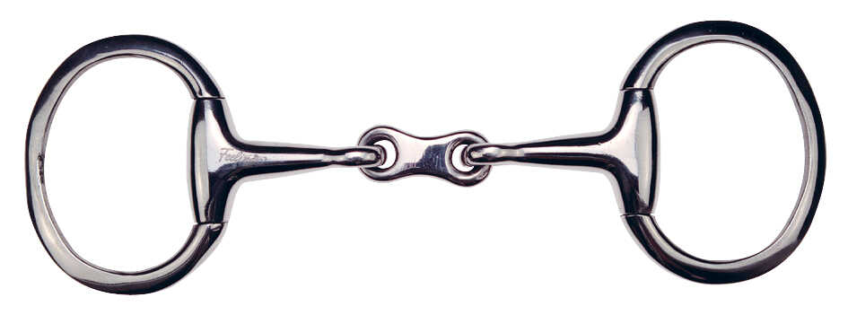 Double-jointed stainless steel bit. With links and flat rings. For horses with narrow palates.