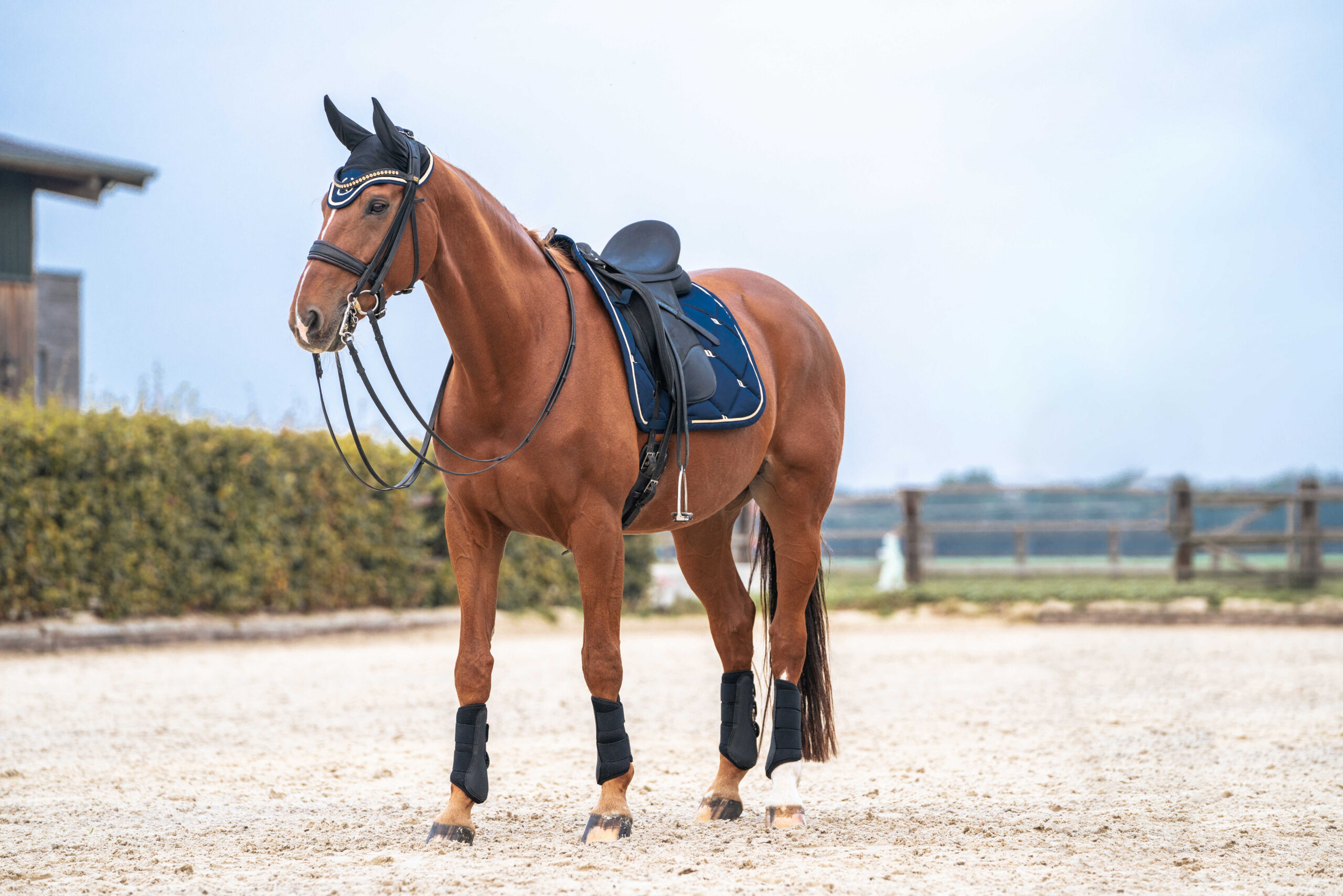 Elegant and stylish fly veil matching the Night Collection saddle pad