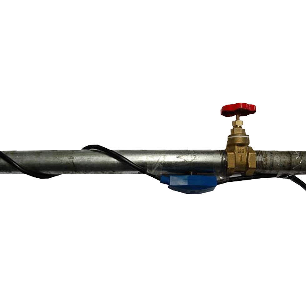 The thermocable is simply twisted around the water pipe and the heat emission of the cable prevents the water pipes from freezing.