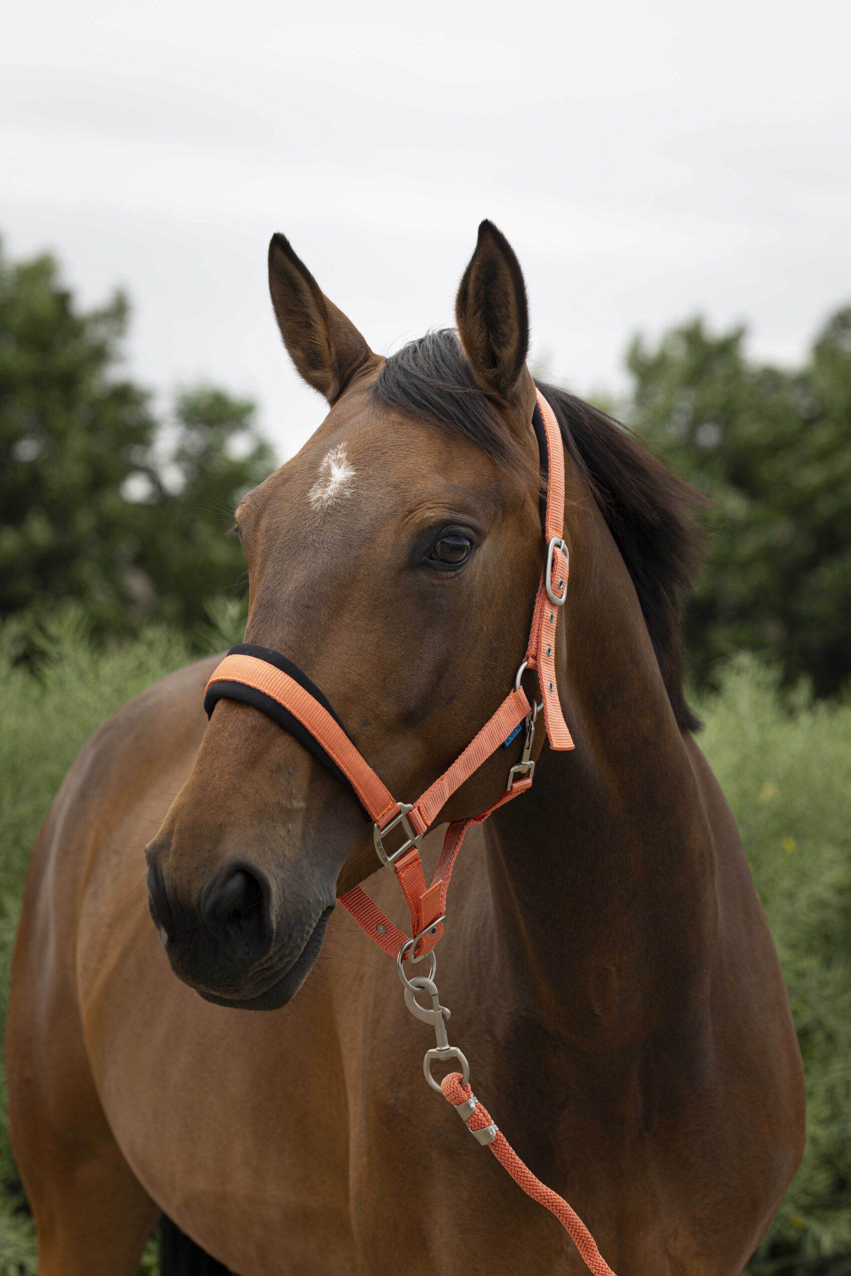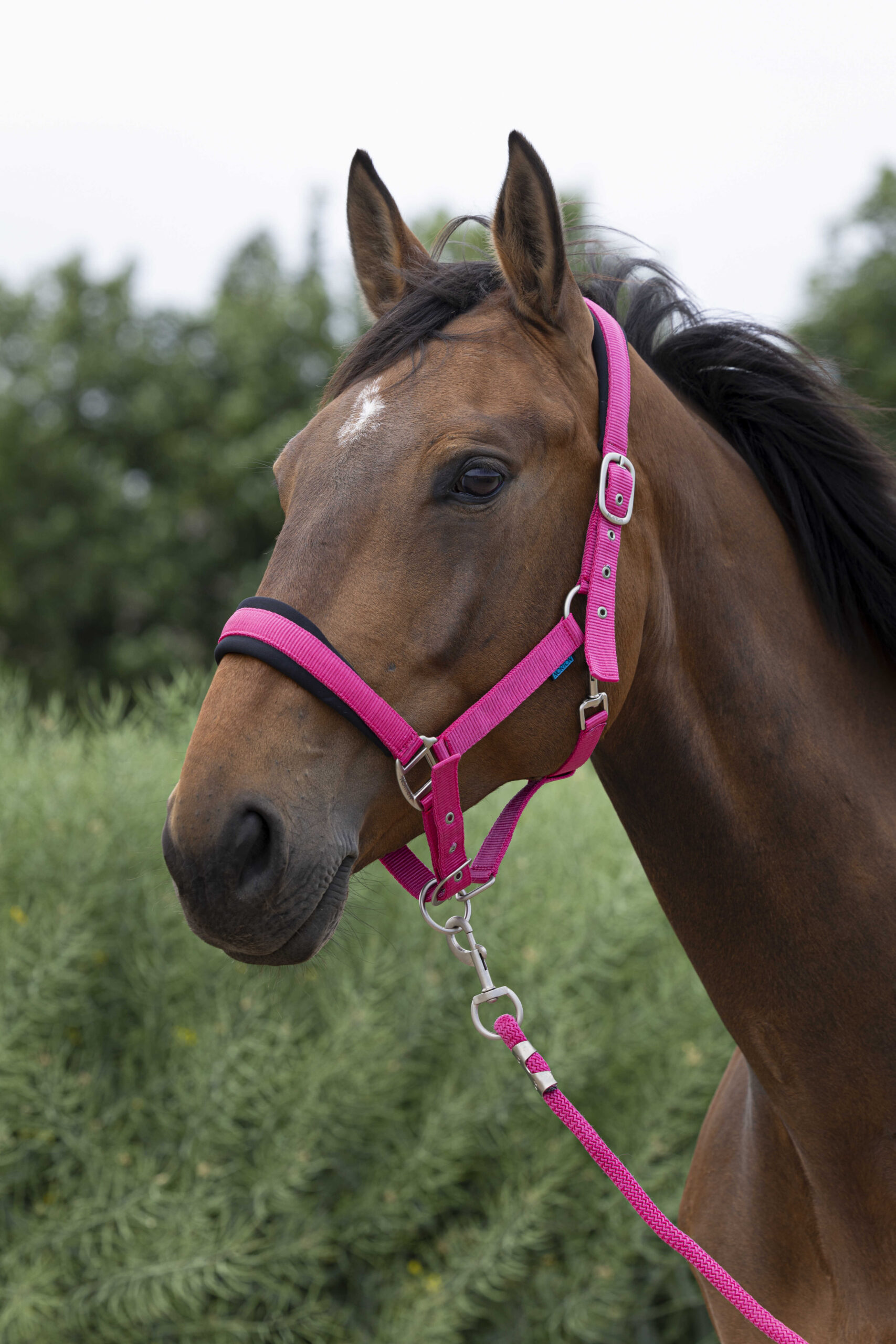 – Extra comfort: A halter with a wide, neoprene-lined browband and noseband.