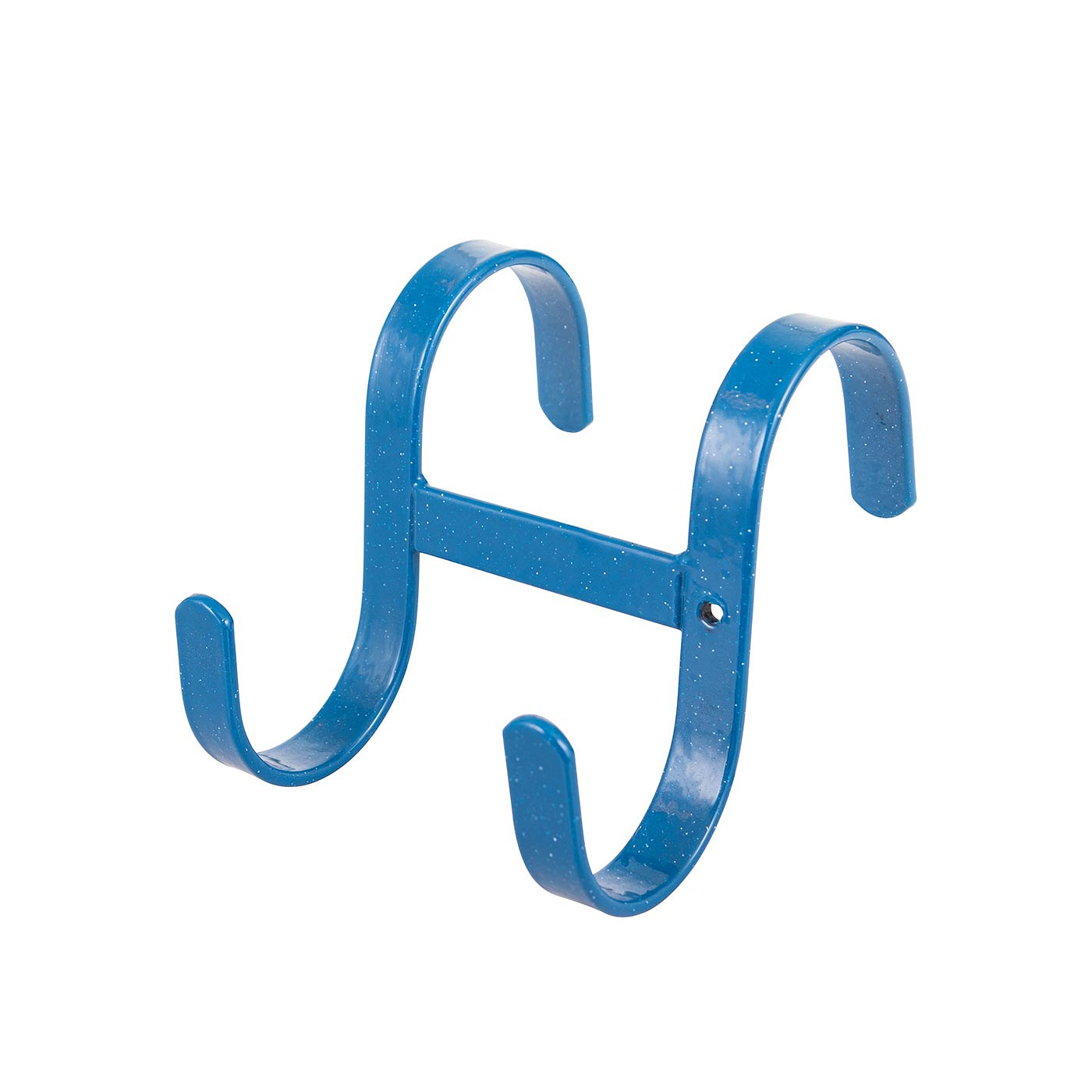 This strong, light hanger features two hooks. The hooks can easily be hung over an edge. Can be used to hang up bridles, jackets, halters, whips, forks and so on. Very convenient for the stable, trailer, tack room, a garden shed or a fence rail. The reversible design includes a fixing hole if permanence is preferred. PU 10.