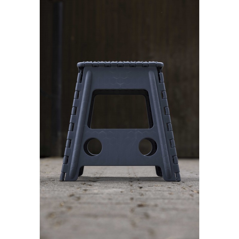 Praktiline kokkuklapitav tool, mis sobib hästi talli, võistlustele või igapäevasteks toimetusteks. Libisemisvastane pealispind kummist nupukestega tagab kindlama haare saapatallaga ning integreeritud käepide muudab tooli kaasaskandmise ja hoiustamise mugavaks.