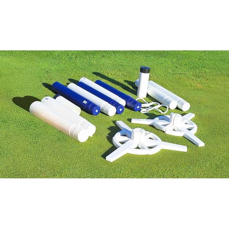 – 5 standard pole sections (2.50 m pole length) and 2 clip-on jump cups.