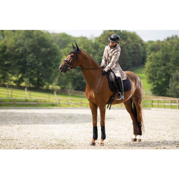 Alpine parka on loodud aktiivsele ratsanikule, kes vajab igapäevaselt sooja ja kaitset. Vetthülgav ja hingav materjal (veepidavus kuni 3000 mm, teibitud õmblused) kaitseb vihma ja tuule eest, samal ajal kui mustust hülgav pind hoiab mantli kaua puhtana. Pikem lõige ja külgmised ratsutamislõhikud helkurdetailidega tagavad liikumisvabaduse sadulas.