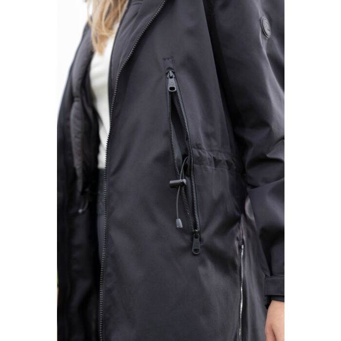 Mantel on varustatud eemaldatava sooja sisevestiga, mida saab eraldi kanda või lisakihina kasutada. Kahesuunaline esilukk, reguleeritav vöökoht ja praktilised taskud muudavad selle parka mugavaks ja funktsionaalseks igapäevaselt.