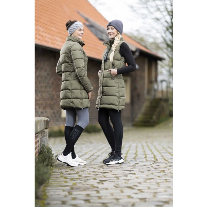 Pikem lõige (90 cm suuruses S), kahesuunaline esilukk ja külgmised pikad ratsutamislõhikud helkurdetailidega tagavad liikumisvabaduse sadulas. Kõrge fliisvoodriga krae, soojad soonikkoes varrukaotsad ning fliisvoodriga taskud hoiavad hubaselt soojas. Täiendavad detailid, nagu kraesse peidetud kapuuts, eemaldatav võtmehoidja ja praktilised sisetaskud, muudavad selle poolmantli igapäevaselt mugavaks ja funktsionaalseks.