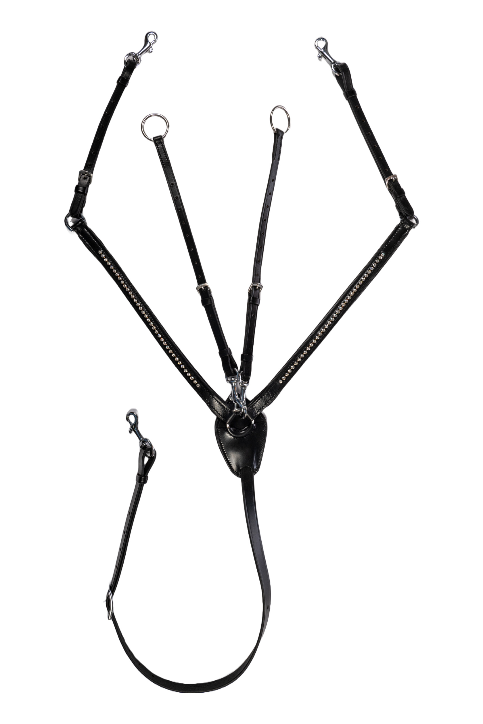 longlife quality leather martingale is detatchable|strong silver coloured fittings|soft padding on the pressure points|decorated with fine crystals
