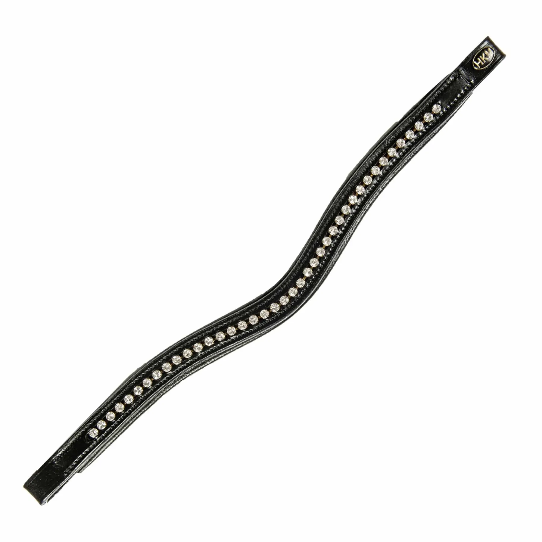 Elegantne mustast kvaliteetsest nahast otsmikurihm, mis on kaunistatud kauni lainelise mustrina paigutatud sünteetiliste kivikestega. See lisab valjastele pilkupüüdvat sära ning sobib suurepäraselt nii igapäevaseks kasutamiseks kui ka võistlusteks.