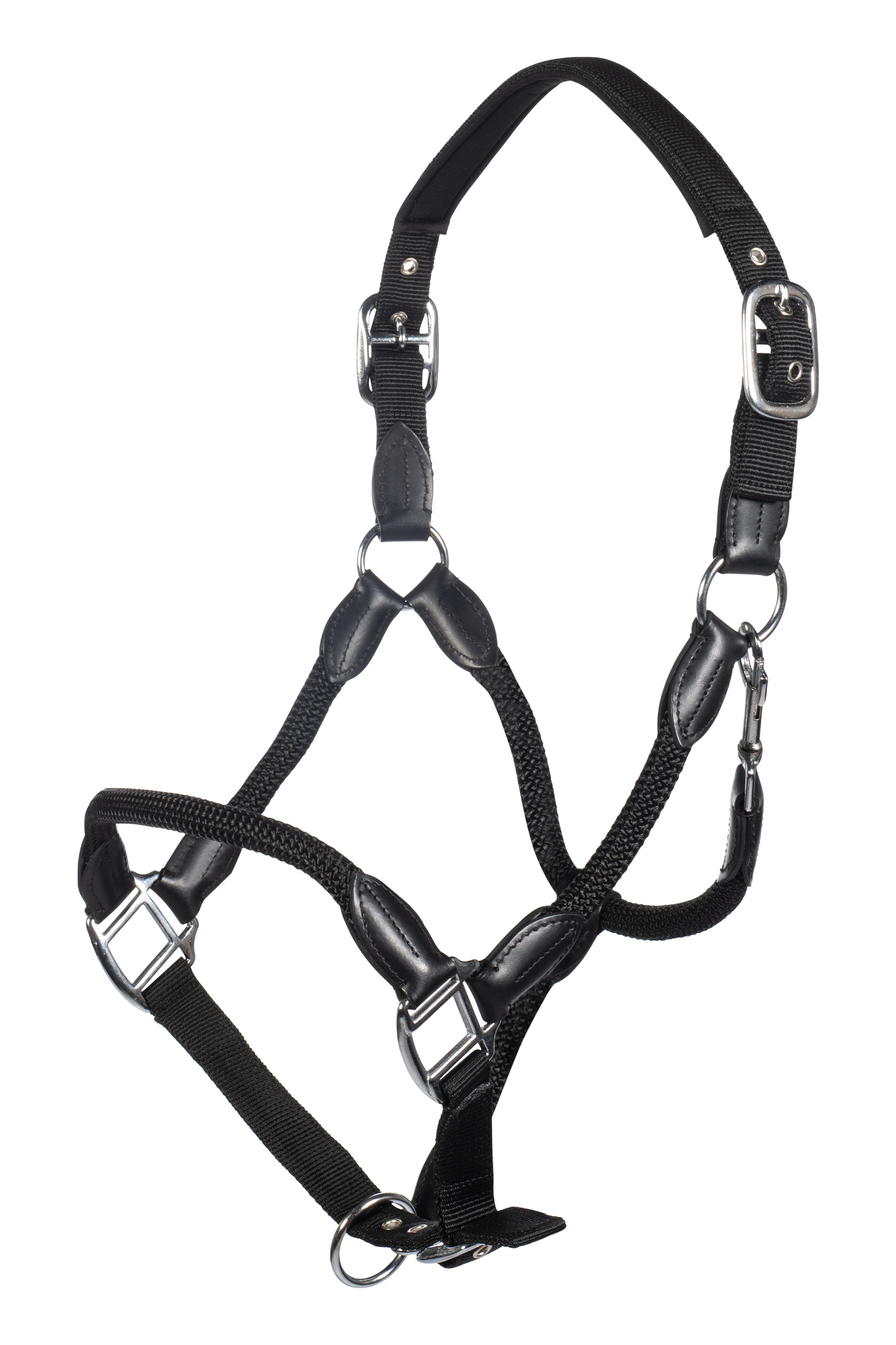 leather/nylon combination padded headpiece|headpiece adjustable on both sides|adjustable noseband