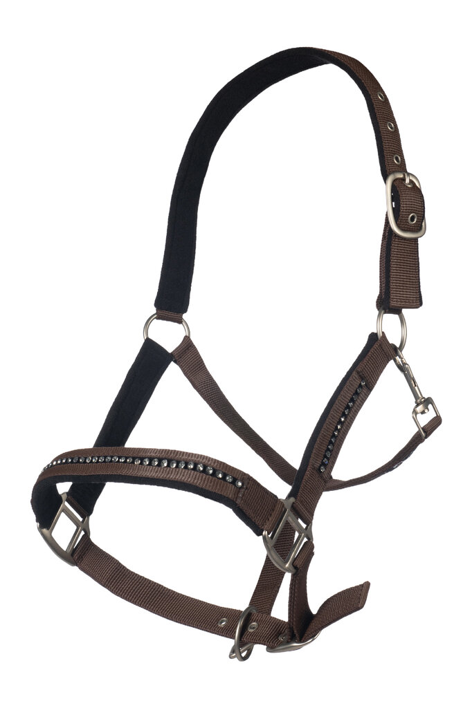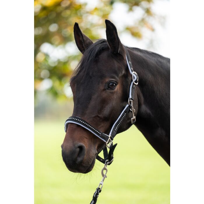 Elegantne ja praktiline päitsete komplekt, mis on kaunistatud sädelevate kivikstega. Pehme vooderdus tagab hobusele mugavuse, samas kui tugevad matt-hõbedased kinnitused lisavad stiili ja vastupidavust. Komplektis on sobivas toonis jalutusnöör.
