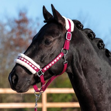 The HKM Sweet Valentine Head Collar is the perfect accessory for your horse. It features soft padding on the browband and noseband, ensuring maximum comfort for your horse. The strong silver coloured fittings add a touch of elegance to the collar, while the snap clip makes it easy to open and close. The headpiece is adjustable on both sides, allowing for a perfect fit, and the noseband is also adjustable for added convenience. This head collar is not only functional, but also stylish, making it a great addition to any horse’s wardrobe.