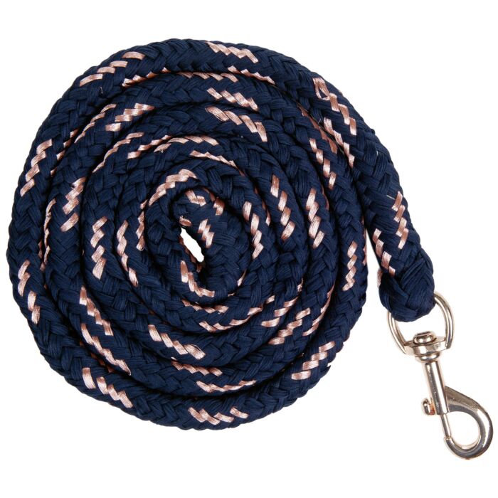 Stiilne ja vastupidav jalutusnöör igapäevaseks kasutamiseks tallis ja hobuse käsitlemisel. Nööri sisse põimitud roosakuldne niit ning metallist karabiin lisavad klassikalisele jalutusnöörile modernset ja pilkupüüdvat ilmet.