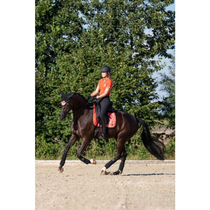 Klassikaline ja mugav polo särk, mis sobib suurepäraselt nii ratsutamiseks kui ka igapäevaseks kandmiseks. 100% puuvillane materjal on nahasõbralik ja hingav, samas kui kehasse hoidev lõige annab korrektse ja viisaka välimuse nii tallis kui ka vabal ajal.
