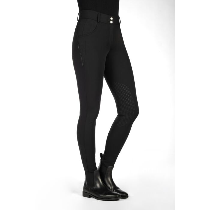 Mugavad ja hästi vormi hoidvad ratsapüksid, mis sobivad suurepäraselt igapäevaseks treeninguks. Kahes suunas veniv, sile ja keha vormiv materjal tagab meeldiva istuvuse, samas kui silikoonist põlvegripid pakuvad sadulas paremat stabiilsust. Keskmise värvliga lõige, elastsed sääreotsad ja vööaasad muudavad need ratsapüksid praktiliseks ning mugavaks valikuks.