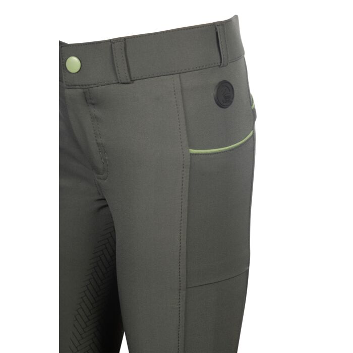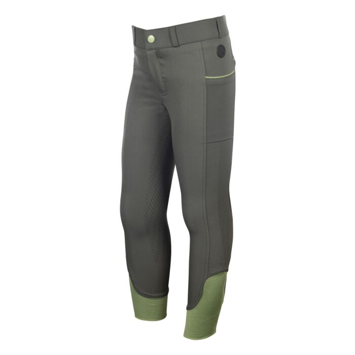 The riding breeches Claire for children combine comfort and functionality in a stylish design. The high-quality 4-way stretch material ensures optimum freedom of movement and a perfect fit. The size-adjustable elasticated waistband guarantees an ideal fit and can be individually adjusted. Special accents are provided by the contrasting coloured piping, which gives the breeches a modern touch, and the breathable mesh leg cuffs, which ensure pleasant air circulation. The two practical slit pockets and belt loops also make these breeches the perfect everyday companion. The silicone full seat also provides a secure hold in the saddle and ensures that your child sits firmly and comfortably at all times.