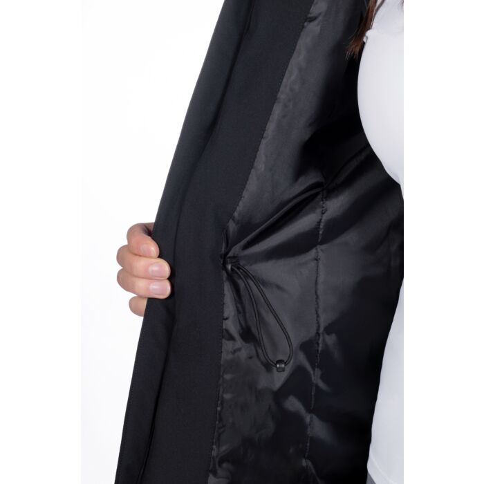 Lisaks on mantel varustatud mitmete veekindlate välistaskutega, sisetaskuga, eraldi kinnitatud võtmehoidjaga ja reguleeritava vööosaga. Elastsed varrukaotsad ja takjakinnitusega reguleeritavad mansetid lisavad mugavust.