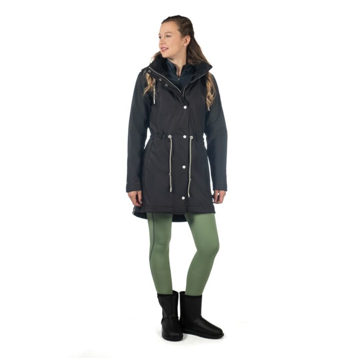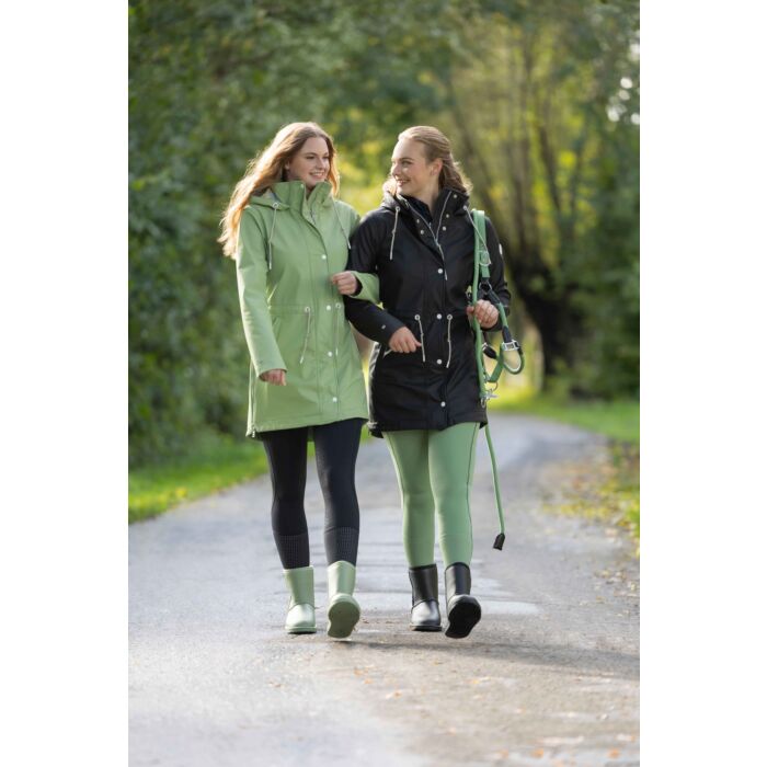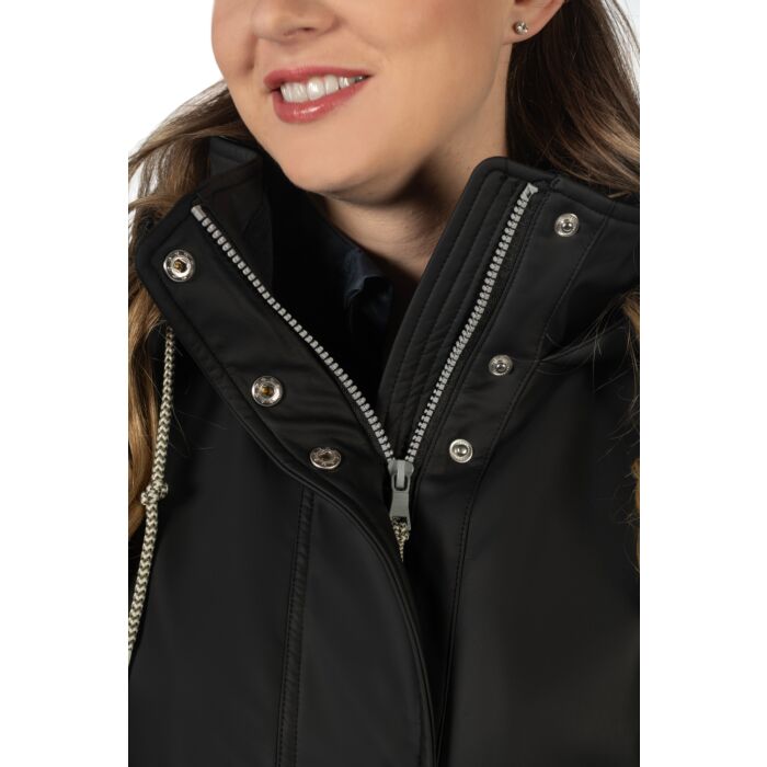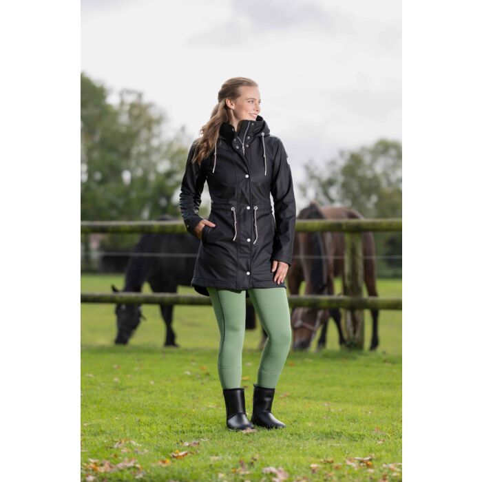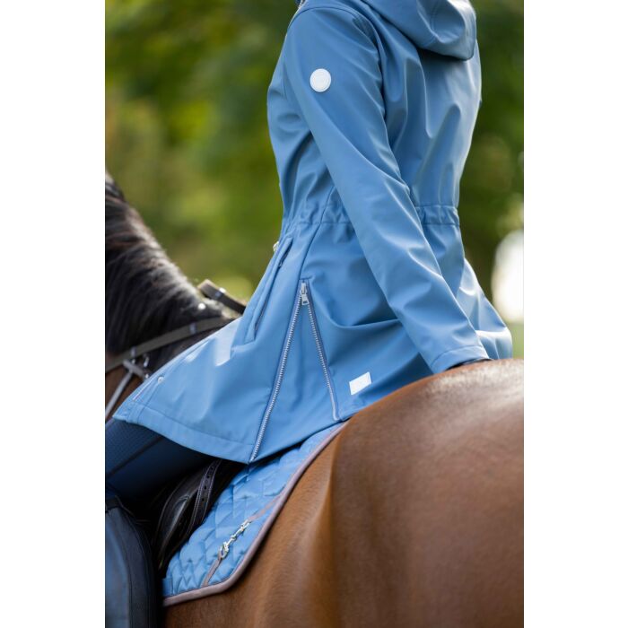 The riding jacket Ohio offers optimum protection in all weathers. It is waterproof, breathable, windproof and dirt-repellent, so you are perfectly equipped for rain, wind and cold. Thanks to the warm, soft fleece lining, the jacket keeps you nice and warm. The two-way zip with placket and water-repellent zip pockets provide additional comfort and functionality. Practical details such as the individually adjustable waist, the adjustable hood and the side riding slits with zip make this jacket the perfect companion for the stable and everyday life.