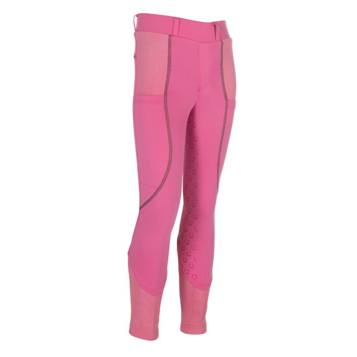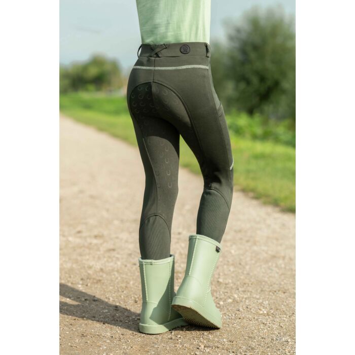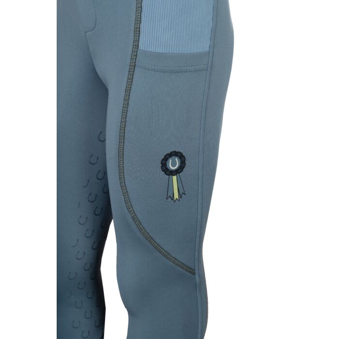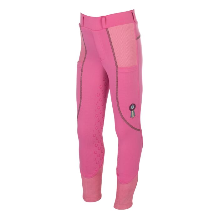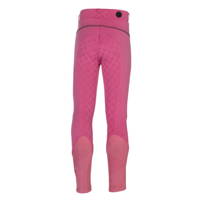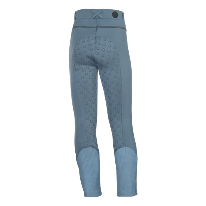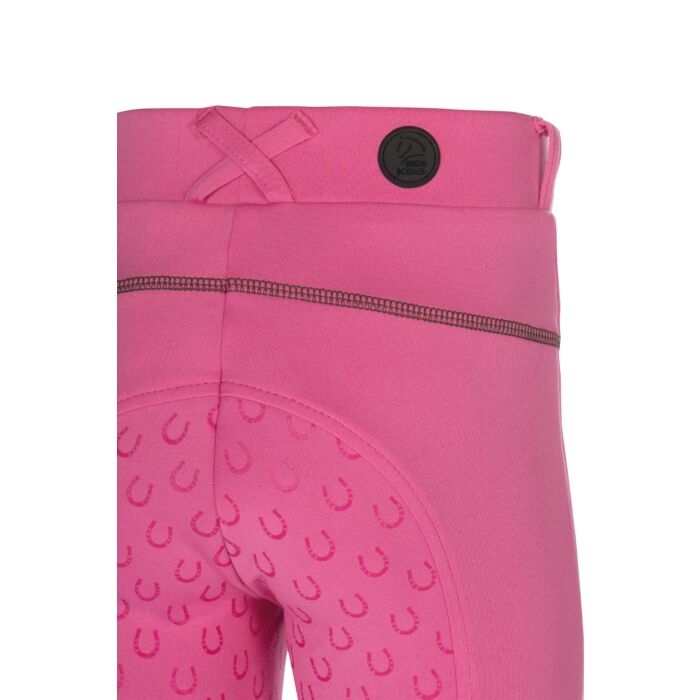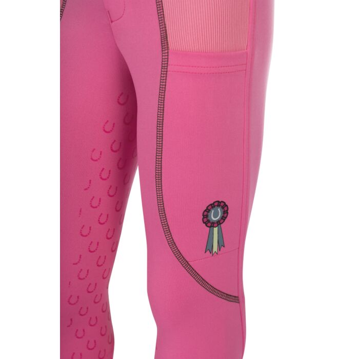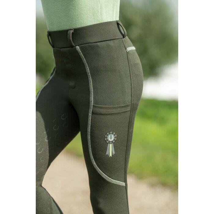 The riding leggings Claire for children combine comfort, functionality and a lovely design. Thanks to the silicone full seat with small horseshoes, they offer optimum support in the saddle, while the elasticated leg cuffs with knitted inserts ensure a perfect fit. Two side slit pockets provide space for small essentials, while the practical belt loops allow for a customised fit. A special highlight is the delicate show bow as a small print – a playful detail that rounds off the sporty look. With the riding leggings Claire, young riders are perfectly equipped for every training session!