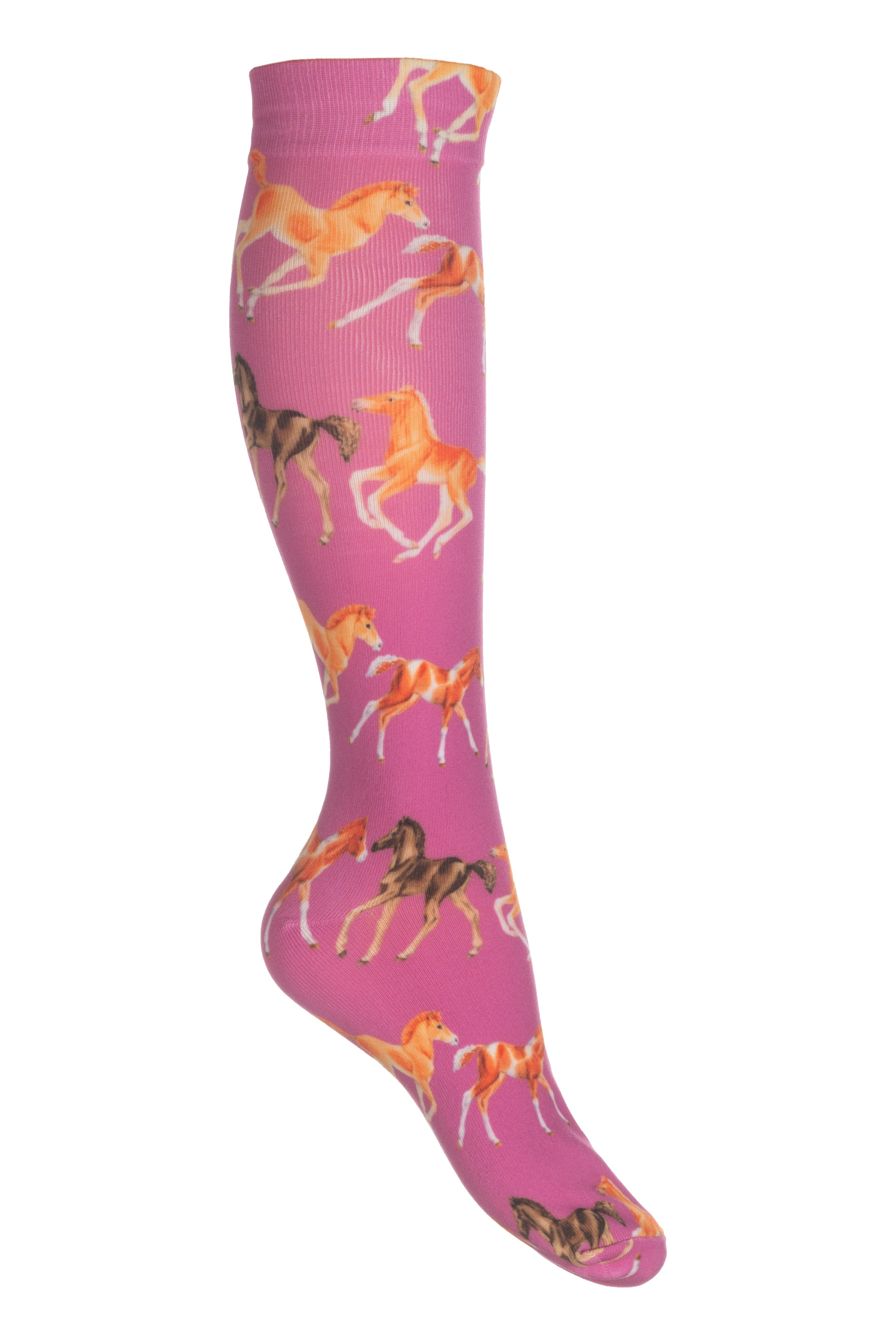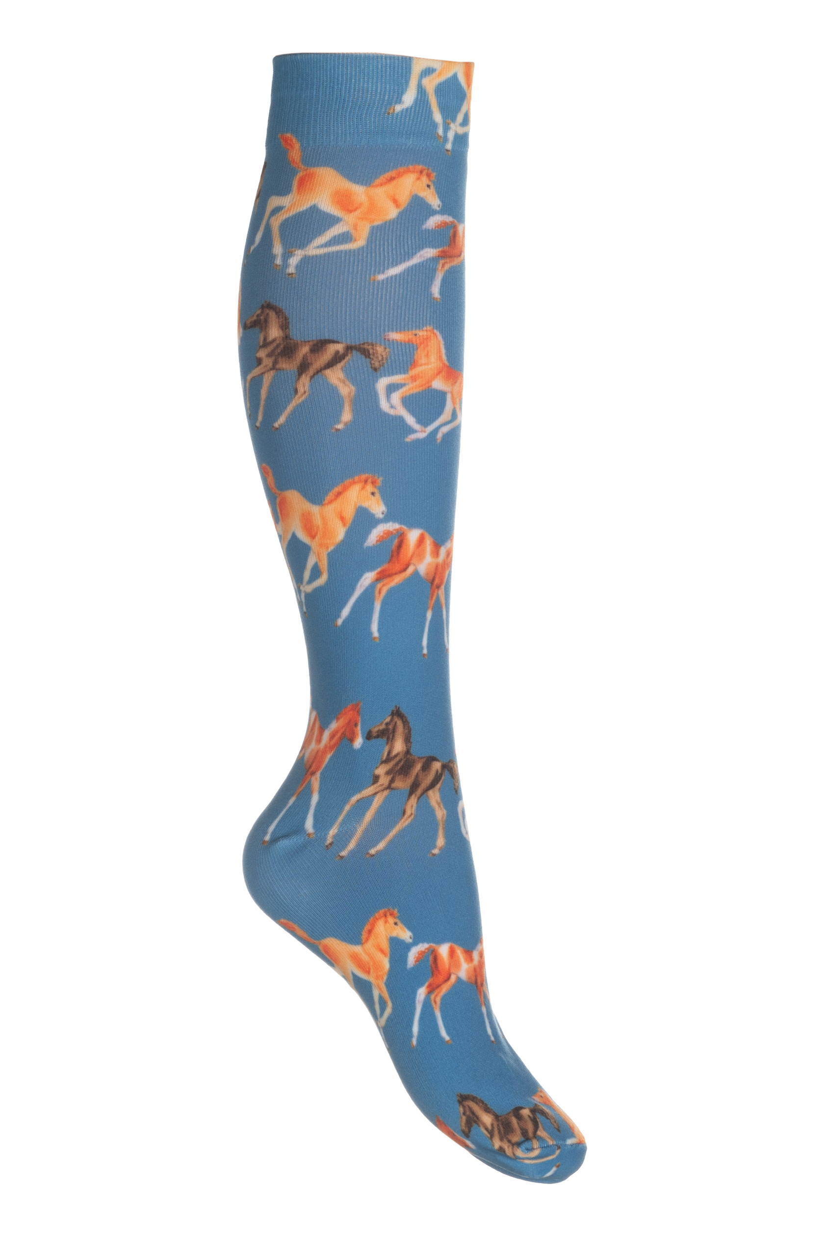 machine washable at 30 degrees 97% polyester, 3% elastane light summer sock|horse motif print