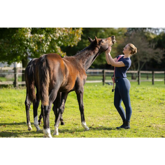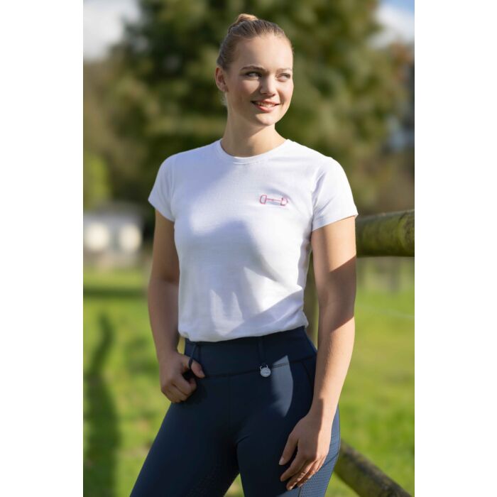 The T-shirt Excellent combines functionality, comfort and style. Made from 100% cotton, it is particularly soft, skin-friendly and breathable – ideal for warm days in the stable or everyday wear. The fashionable decorative print in a contrasting colour is a real eye-catcher: a large motif in the shape of bits on the back creates a stylish riding look, while a small bit detail on the chest harmoniously rounds off the design.