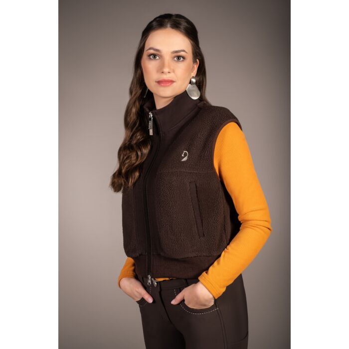 Stiilne ja soe lühike ratsavest, mis sobib ideaalselt kandmiseks nii sadulas kui ka igapäevaselt tallis. Pehme teddy-karvane viimistlus lisab mugavust ja hoiab jahedamal ajal mõnusalt sooja, samas kui naiselik lõige tagab elegantse välimuse.
