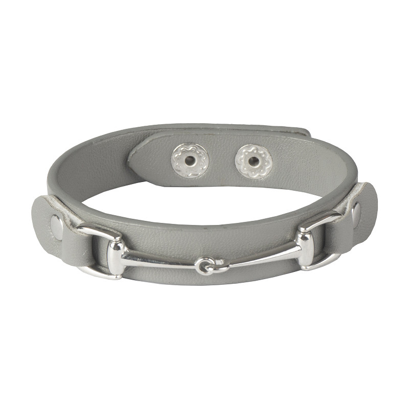 Faux leather bracelet with a metal clasp. Adjustable with two snaps. Dimensions: Shortest length: 17 cm, Longest length: 20 cm. Material: Faux leather and metal.