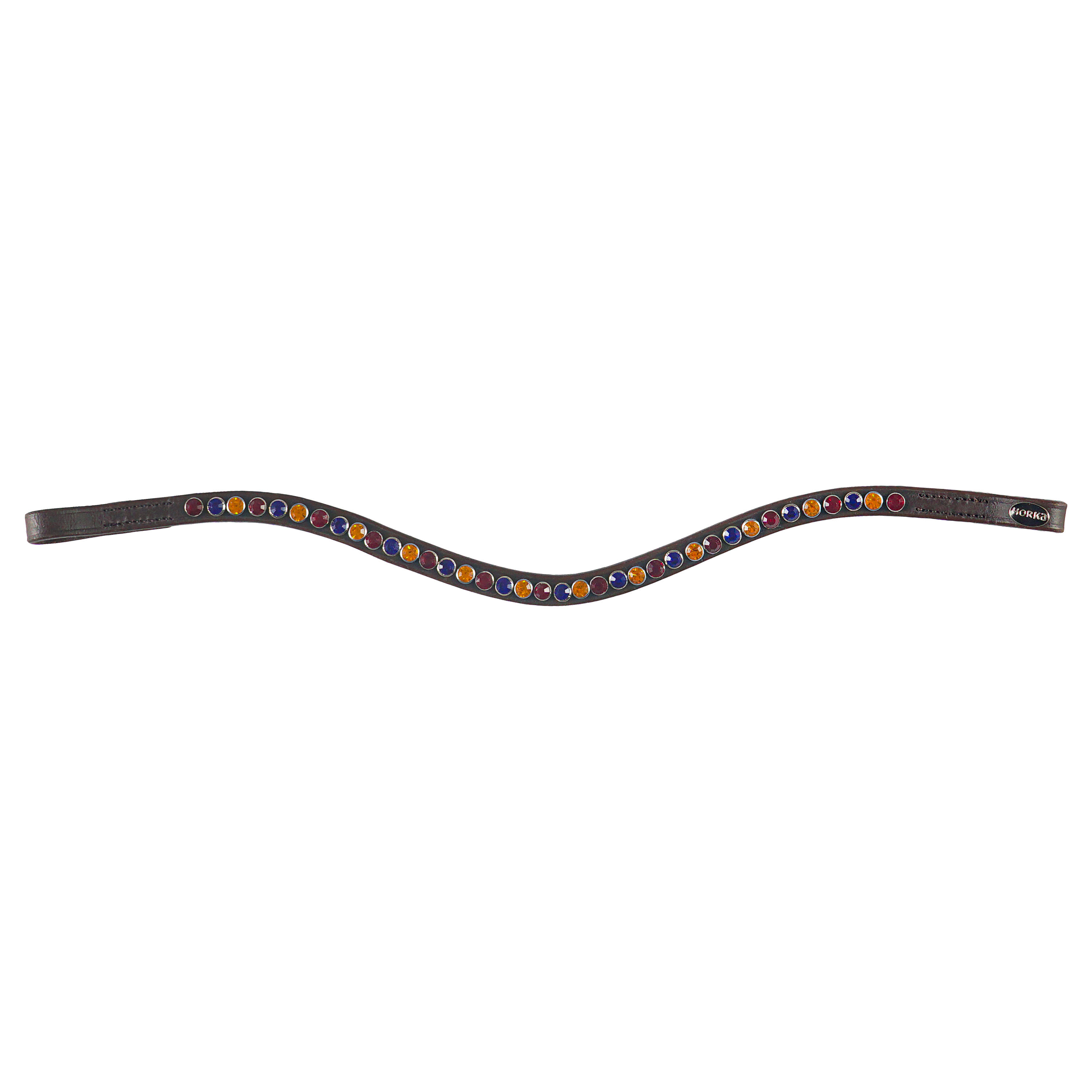 Elegantne otsmikurihm, mida kaunistab värviliste kivikestega kett, mis langeb kaunilt üle hobuse otsmiku. See pilkupüüdev detail lisab valjastele erilise ja luksusliku välimuse ning sobib hästi nii igapäevaseks kasutamiseks kui ka võistlusteks.