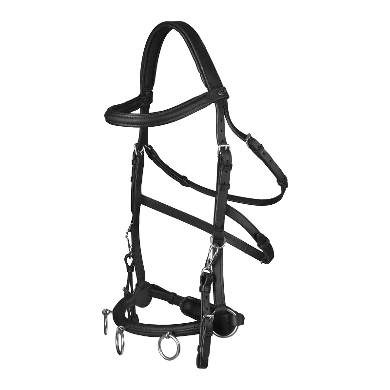 – Three rings on the noseband to attach the lunging line and/or lunging aids