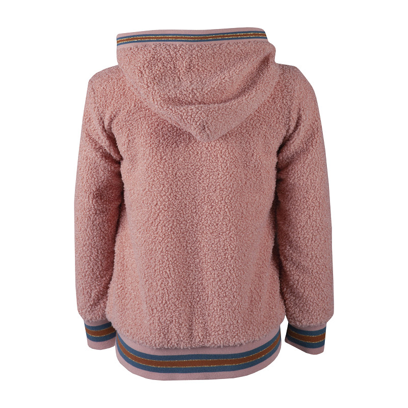 Children’s hooded jacket made of soft teddy material. Product specifications: Full front zip Two front zip pockets Ribbed cuffs and hem Small Jollycorn badge on the chest Material: 100% Polyester Teddy 320 gsm