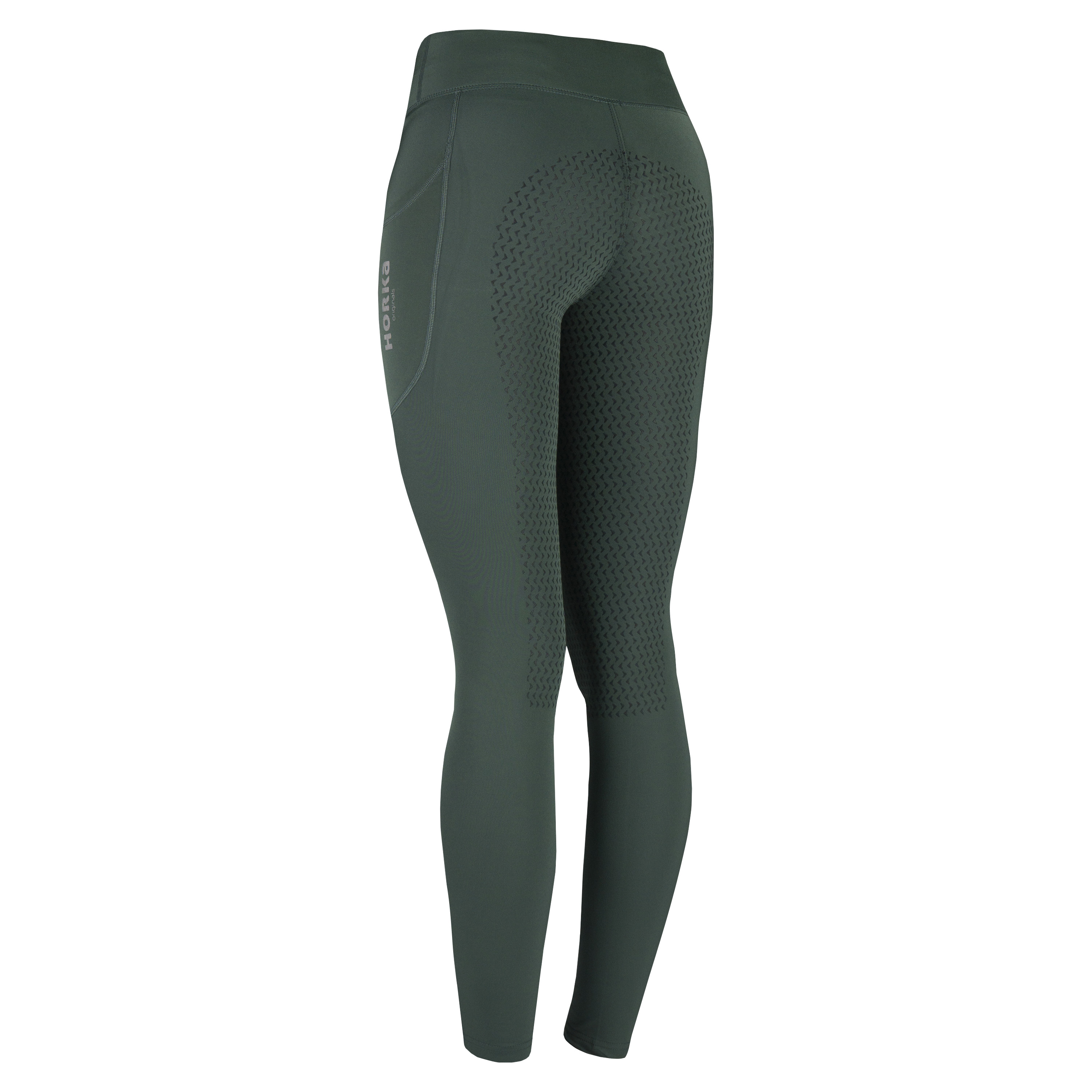 The fashionable riding tight with a full silicone seat from the HORKA Originals collection creates extra grip in the saddle. This tight features a wide elastic waistband and high definition rubber print artwork.