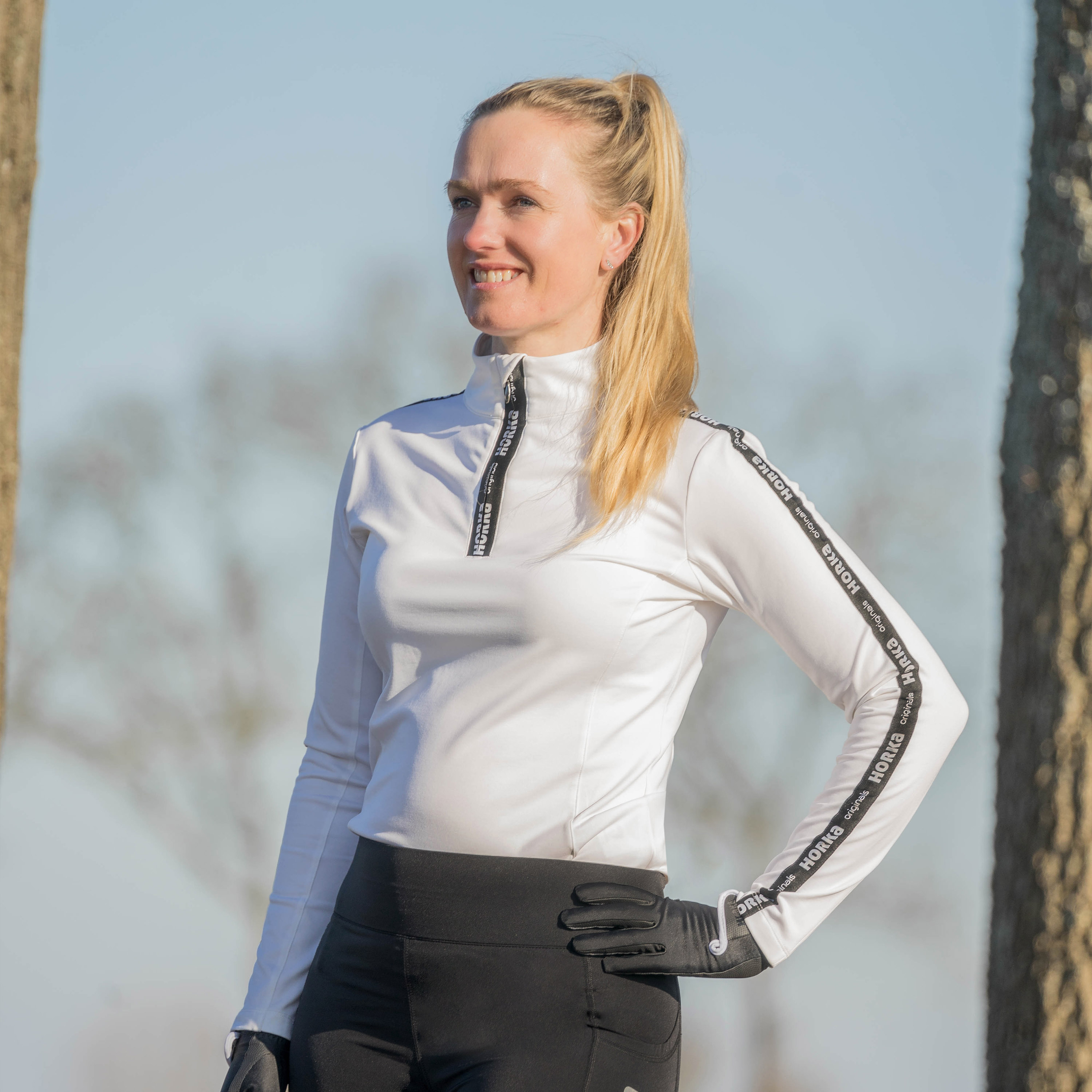 HORKA is celebrating! To celebrate HORKA’s 65th anniversary, the special, exclusive HORKA Originals collection has been released. This collection consists of comfortable clothing suitable for various occasions. Whether you want to use this clothing for riding, as protection for white competition uniforms during outdoor activities, or for relaxing, there’s a product from the HORKA Originals collection that suits you! The HORKA Originals Tape shirt is a high-quality, long-sleeved shirt. Made of technical, breathable, and quick-drying fabric. This fabric is treated with Polygiene and Odor Crunch to combat perspiration odor. The shirt has a stand-up collar and a zipper with printed zipper tape. Product specifications: Long sleeve shirt Made of lightweight breathable and quick-drying material Treated with Polygiene and Odor Crunch to counteract perspiration odor Short stand-up collar zipper with printed tape : Printed tape over the side of the sleeves Material: 90% polyester 10% elastane 200 gsm brushed on the inside treated with Polygiene and Odor Crunch