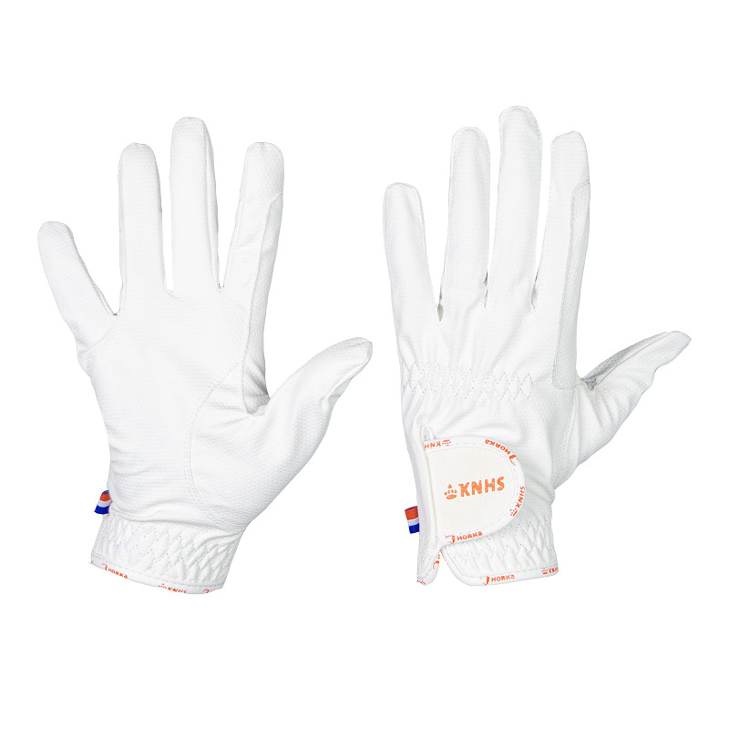 Gloves made of synthetic leather. The glove is designed with a velcro fastener with KNHS logo.
