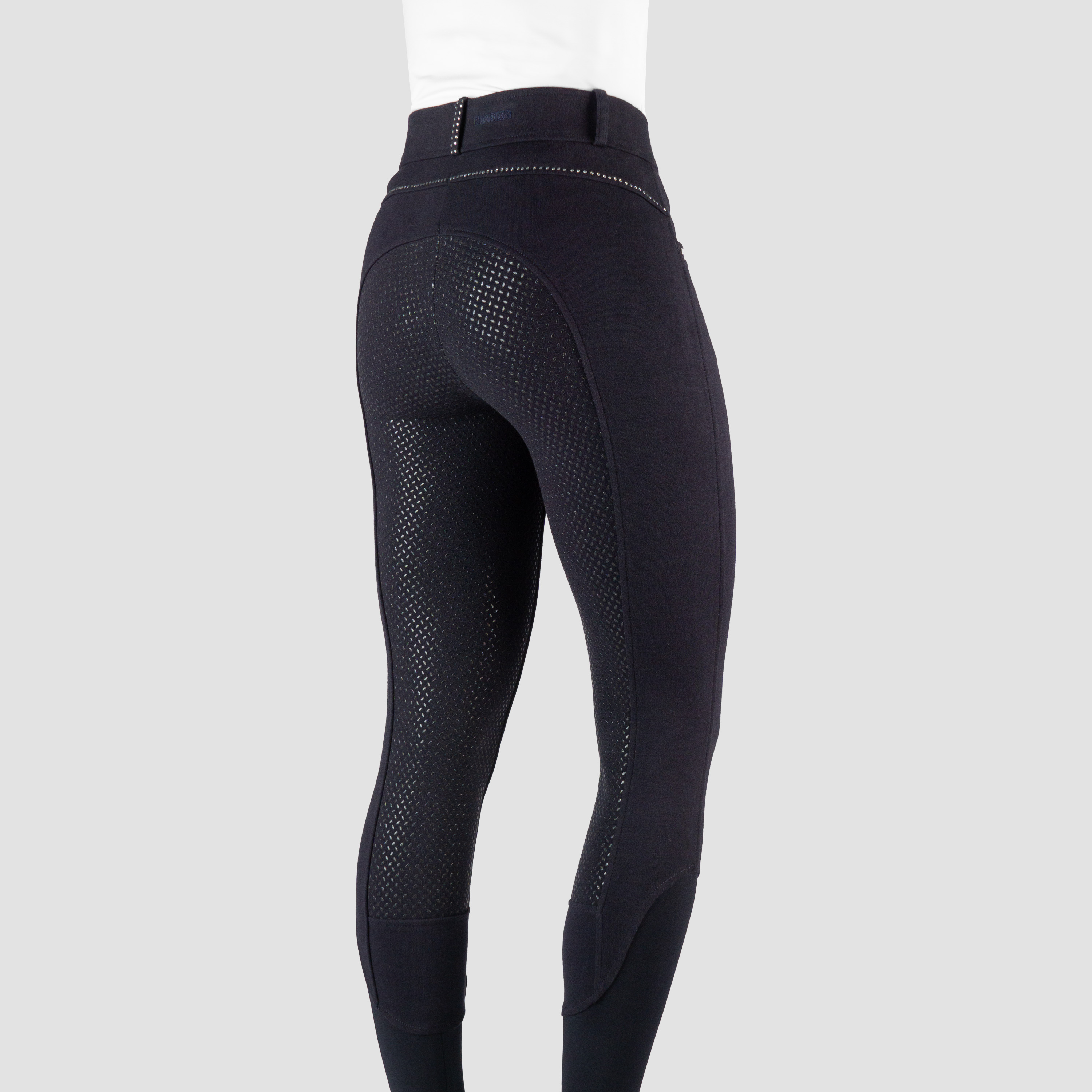 Elegantsed ja kvaliteetsest puuvillasest materjalist ratsapüksid, mille disaini täiustavad kaunistusena sädelevad kivikesed ning veidi paksem kangas, mis aitab vähendada läbikumavust.