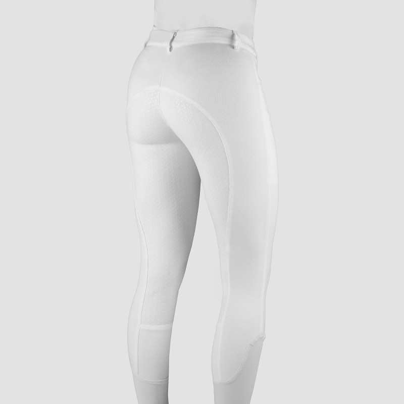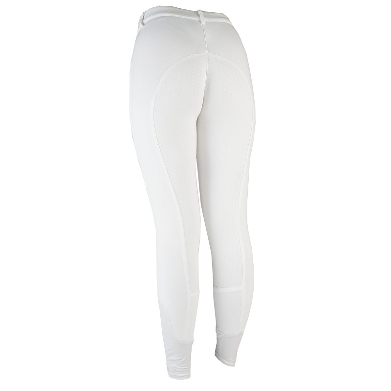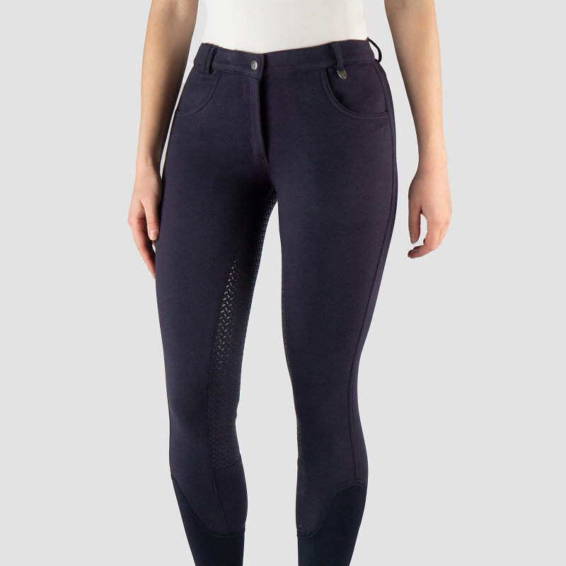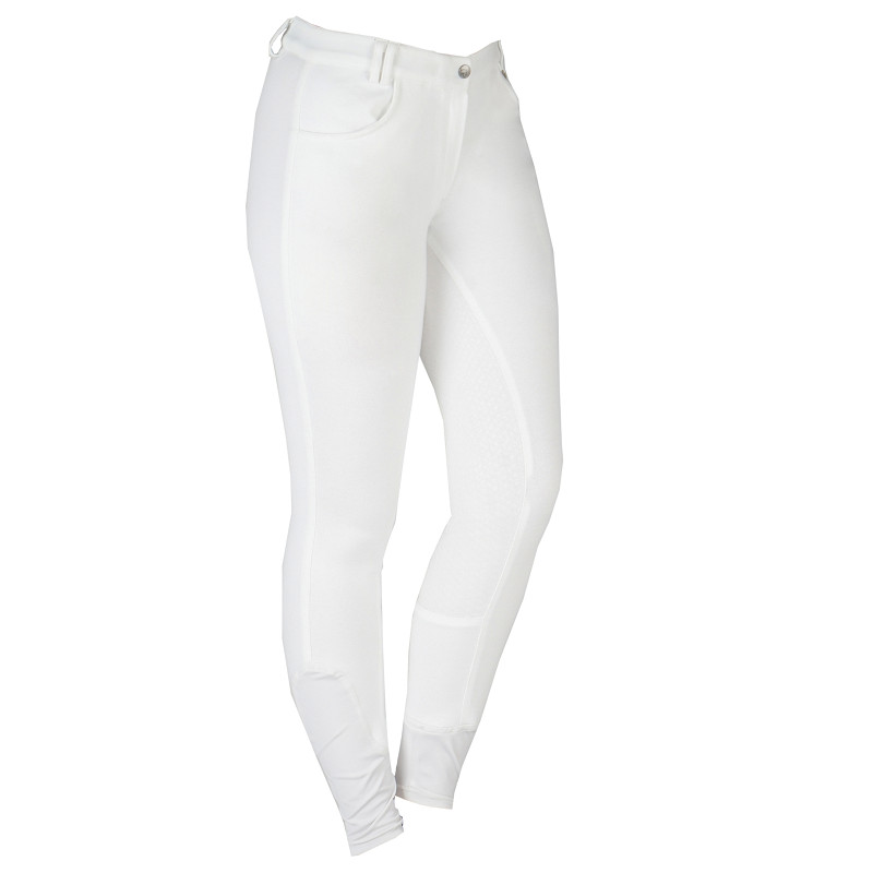 Basic ladies breeches with two front pockets and matte rice corn silicone full seat.