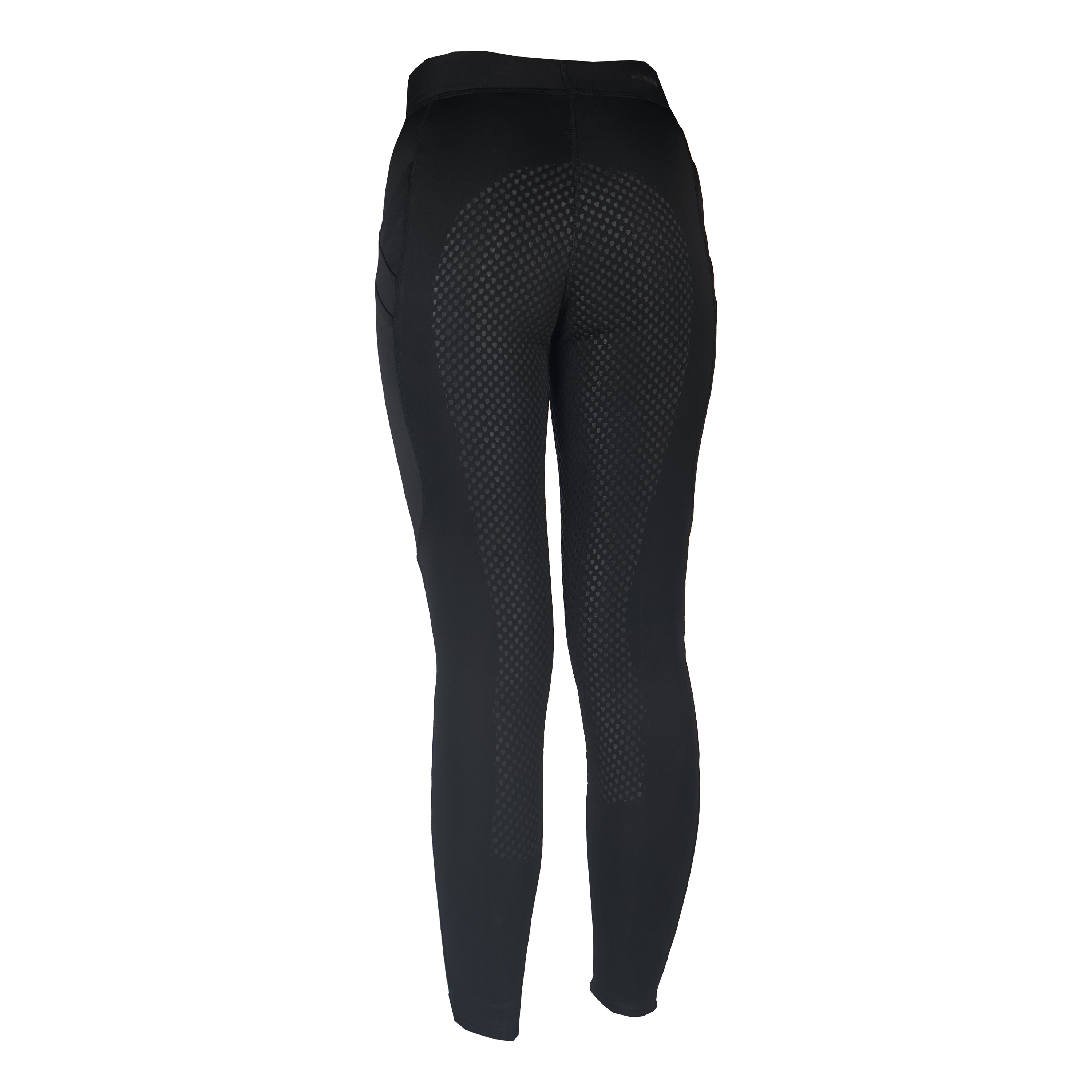 Classically designed women’s riding leggings. The Kate riding leggings feature a high waist and a printed silicone seat. Product specifications: High waist, Side zippered pocket for mobile phone, Full silicone seat, Material: 90% polyester, 10% spandex knit