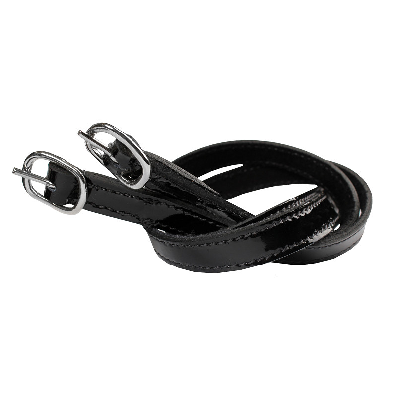 Patent leather spur straps. Product specifications Reinforced with nylon lining Per pair Dimensions: 45 cm long