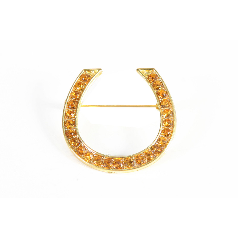 Horseshoe plastron pin with rhinestones.