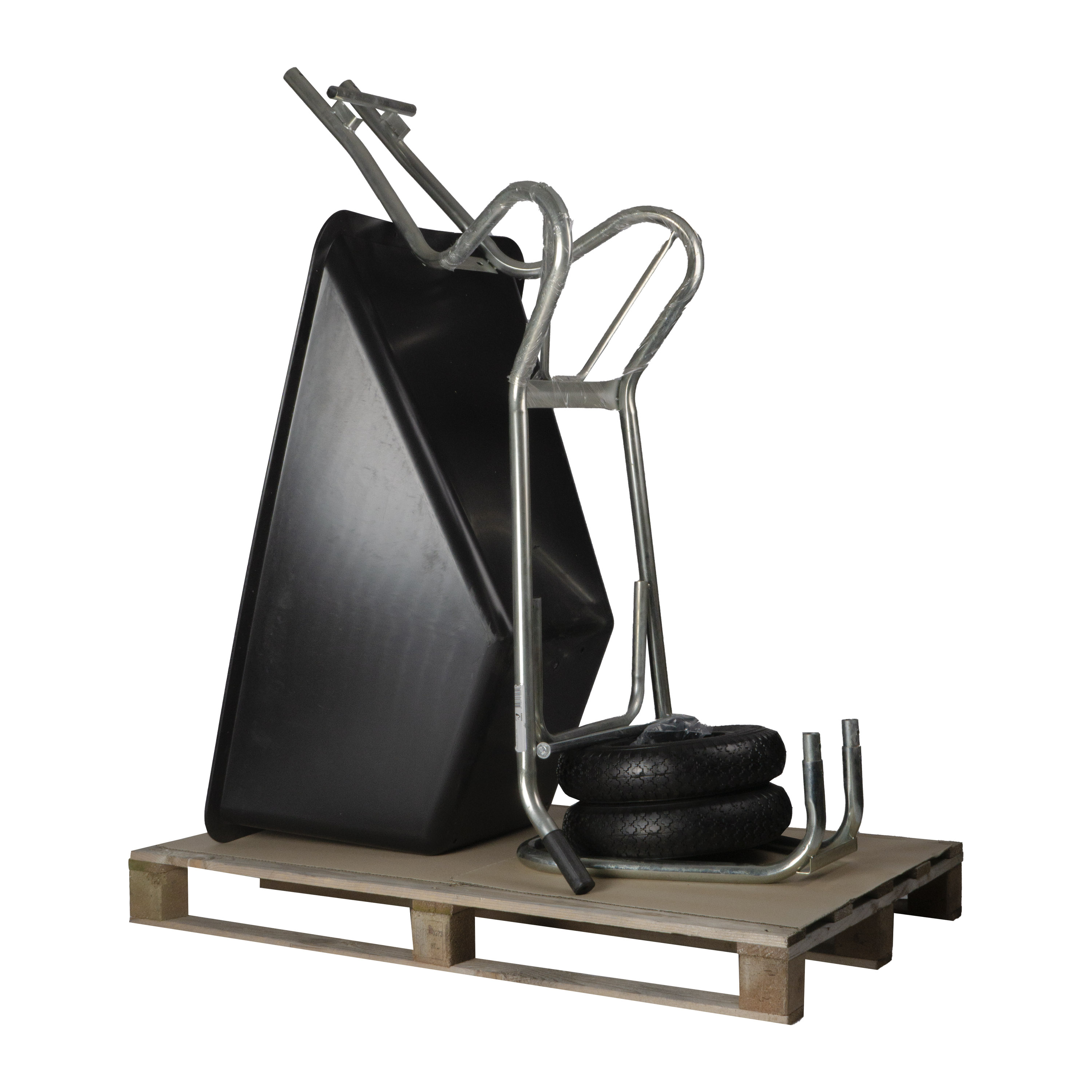 This robust wheelbarrow has a plastic container and galvanized frame and comes standard with an anti-puncture tire. The wheelbarrow has a load capacity of 200 kilograms and a capacity of 160 liters. Ideal for use when mucking out the stable or transporting garden waste. Product specifications: Load capacity: 200 kg Capacity: 160 liters Wheelbarrow weight: 1725 KG Dimensions: (L x W x H): 165 cm x 64 cm x 76 cm Please note: the costs for shipping on a pallet (max. 6 pieces per pallet) are always charged to the buyer. Want to know more about the shipping options? Please contact us.