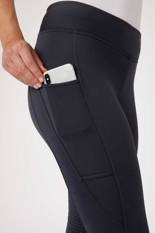 Warm lining makes these riding tights a wintertime favourite. The mid-rise waist is comfortable with layers and won’t bind. Soft breathable fabric with brushed inside is ideal for holding in warmth for pleasant cold weather rides. The silicone full seat adds grip to keep you secure in the saddle. The pocket keeps your phone safe.