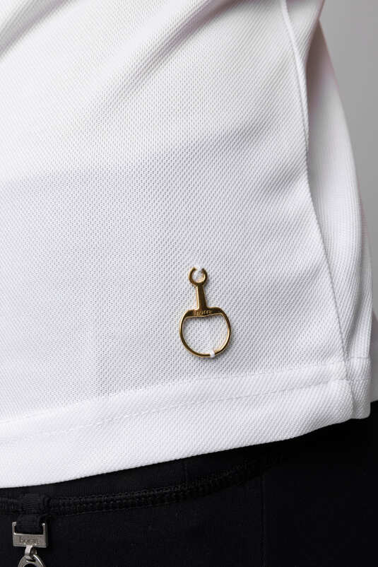 Klassikaline laste võistluspluus, mis ühendab traditsioonilise stiili ja elegantsed detailid modernse, funktsionaalse kangaga. Krae ja esiosa volangid loovad traditsioonilise ilme, samas kui sädelevate kivikestega nööbid ja rinnal olev logo lisavad pidulikkust. Hingav ja kerge kangas tagab noorele ratsutajale mugavuse ka võistluspäeva pingelistes tingimustes.