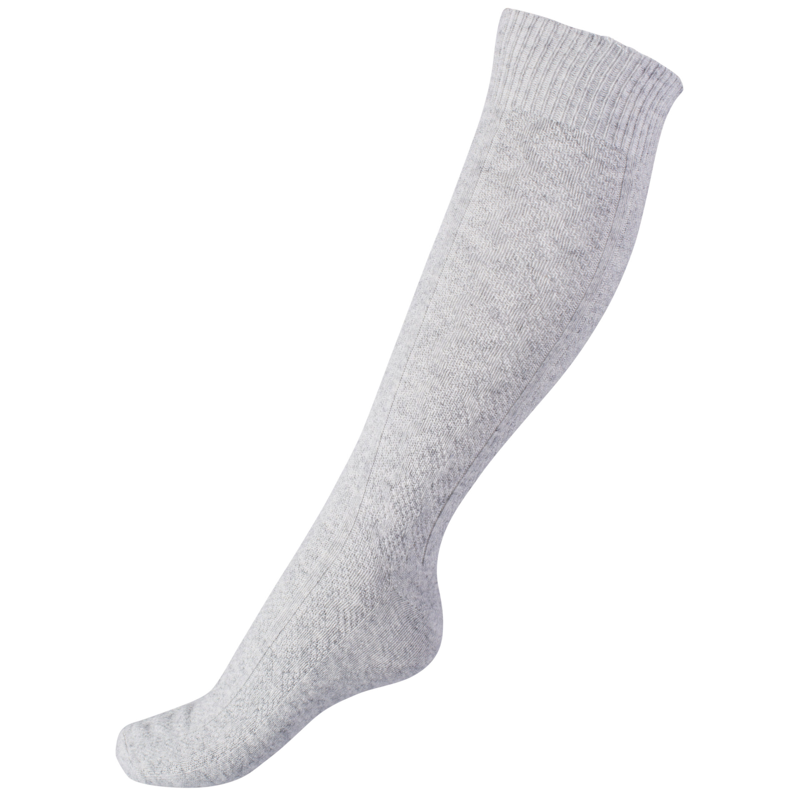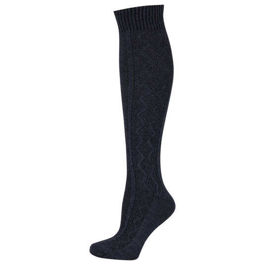 Soft woolmix knee socks with knitted pattern are warm over breeches or jeans.
