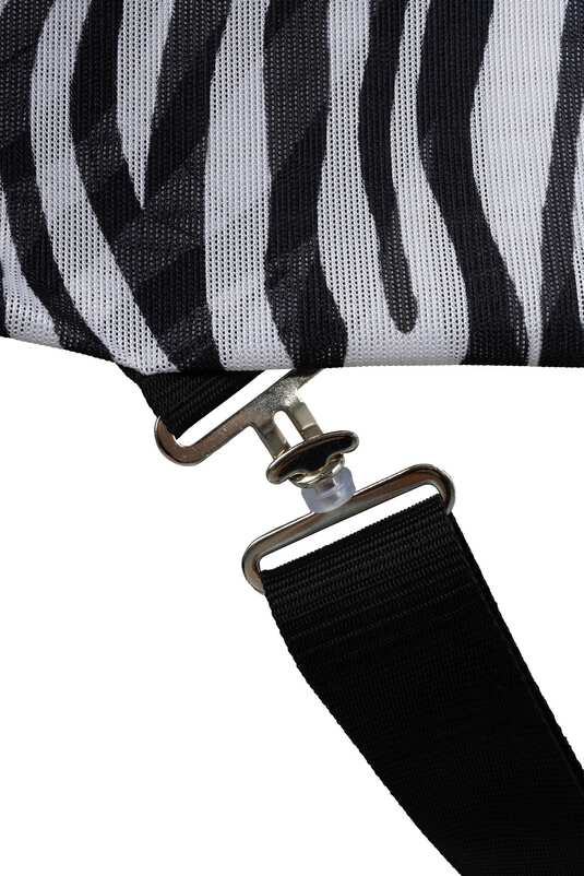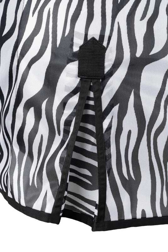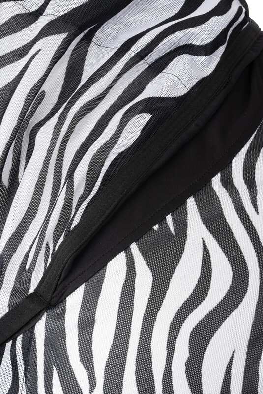 Expertly designed to give your horse day-long summer turnout protection, the Horze Defender Fly Rug is UV-protective and features a superb zebra print design which offers head to tail protection from annoying and biting insects. Zebra stripes are a highly effective deterrent against flies as the contrasting stripes have been shown to confuse and deter insects, helping to reduce bites and irritation. Made from a fully breathable fabric to ensure your horse stays cool and comfortable, it is also quick to dry, should your horse get caught in a rain shower. With a Elastane insert at the base of the neck for added stretch and comfort, the Defender Fly Rug also features a smooth lining along the extra-long neck area and shoulder areas, to help prevent friction and ensure your horse is comfortable and protected, all summer long.