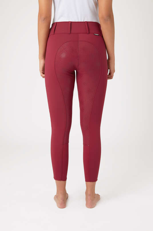 You will love these new and improved Grand Prix-styled warm, water repellent, full seat breeches for your next cold weather ride. The fleece-lined wide waist breeches with a silicone grip allow plenty of contact with the saddle while providing that extra layer of warmth you need for winter riding. The stretchable, breathable soft-shell fabric repels hay and horse hair so you will always look neat and clean. The full seat allows plenty of freedom of movement and the elastic leg bottoms provide a smooth fit under tight boots or chaps.