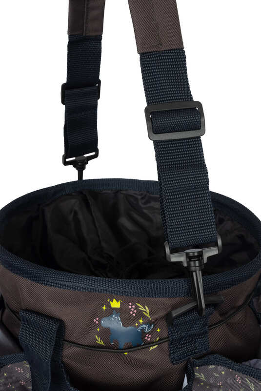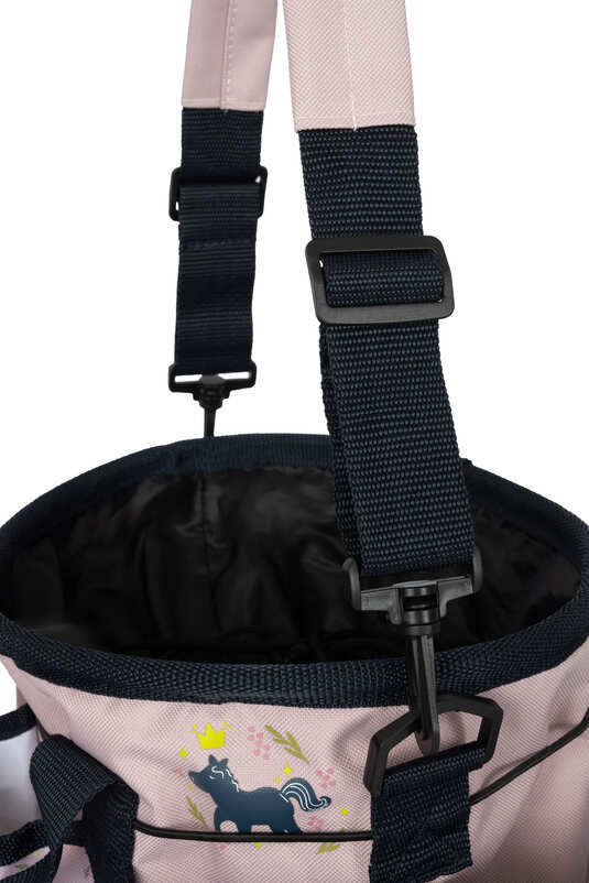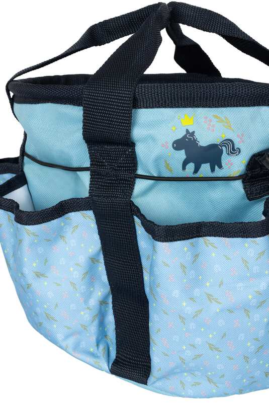 The Horze grooming box is a colorful and practical bag for young horse lovers who want to keep their grooming supplies stylishly and neatly organized. The bag is made of durable fabric. It features multiple exterior pockets for quick access to frequently used grooming items and a spacious interior for larger tools. The adjustable shoulder strap and sturdy carrying handles offer versatile carrying options and increase comfort during transport. This grooming box is the perfect combination of functionality and appealing design, ideal for use in the stable or on the go.
