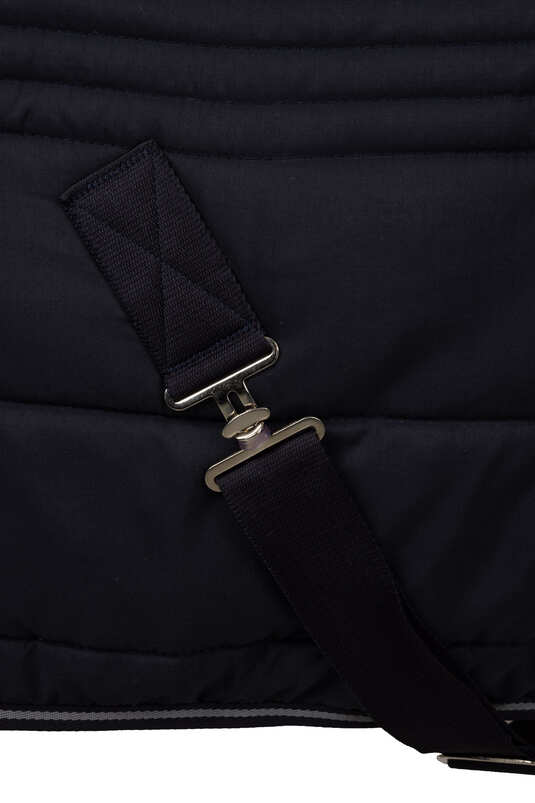 The lightweight Horze Kingsley Stable Rug, 150g has just enough fill for a nice warm layer without too much bulk. Double T-buckles close the front of this rug and cross surcingles keep it in place along with a tail strap. This rug is sturdy enough to use as a turnout too!