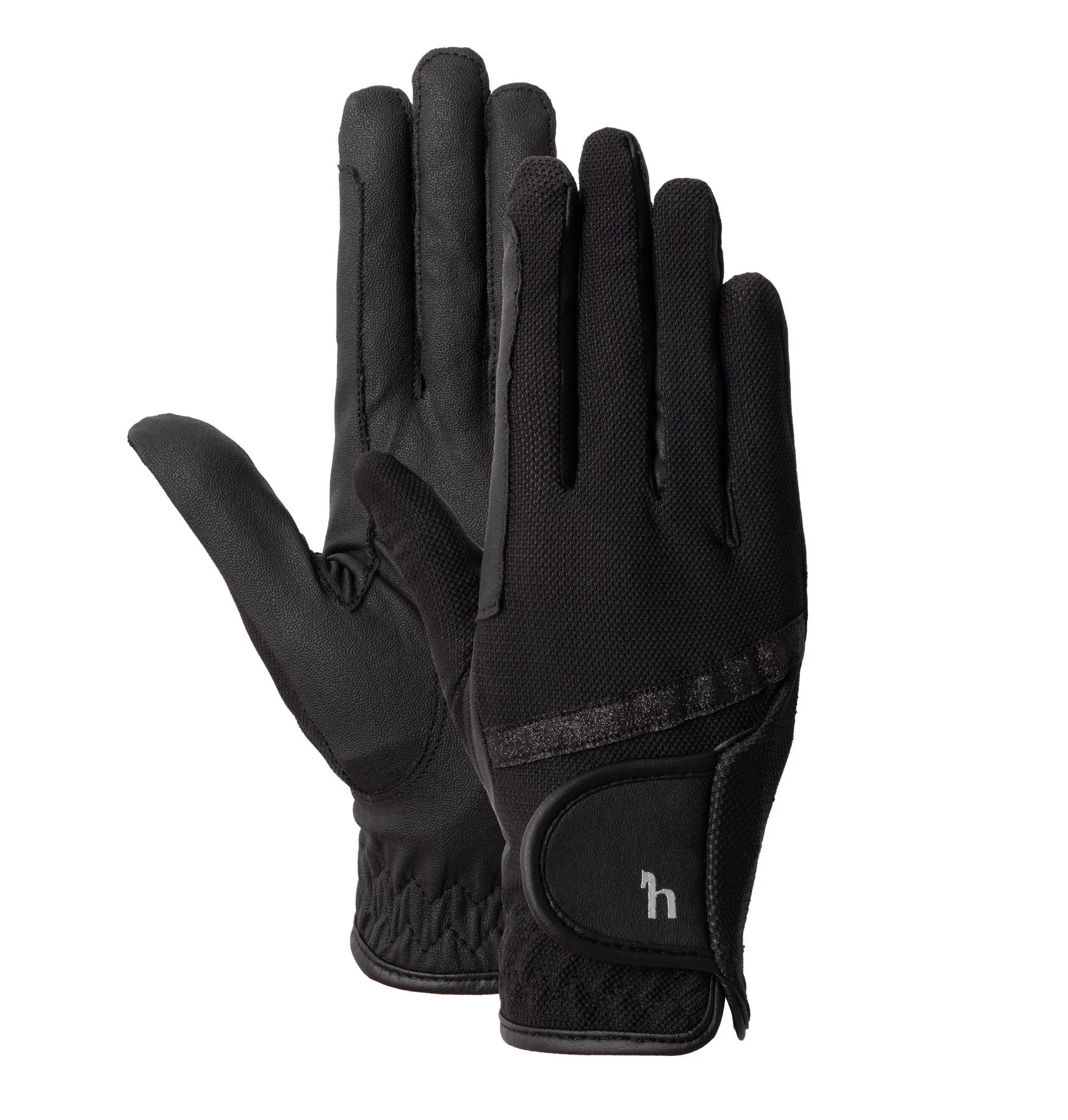 Stiilsed ja funktsionaalsed ratsakindad suvisteks ratsatreeninguteks. Peopesal olev kunstnahk tagab kindla nakkuvuse ratsmetega, samal ajal kui käeselja võrkkangast osa aitab hoida käed jahutatuna ning vähendab higistamist kuumadel päevadel. Sädelevad detailid lisavad kinnastele elegantse viimistluse.