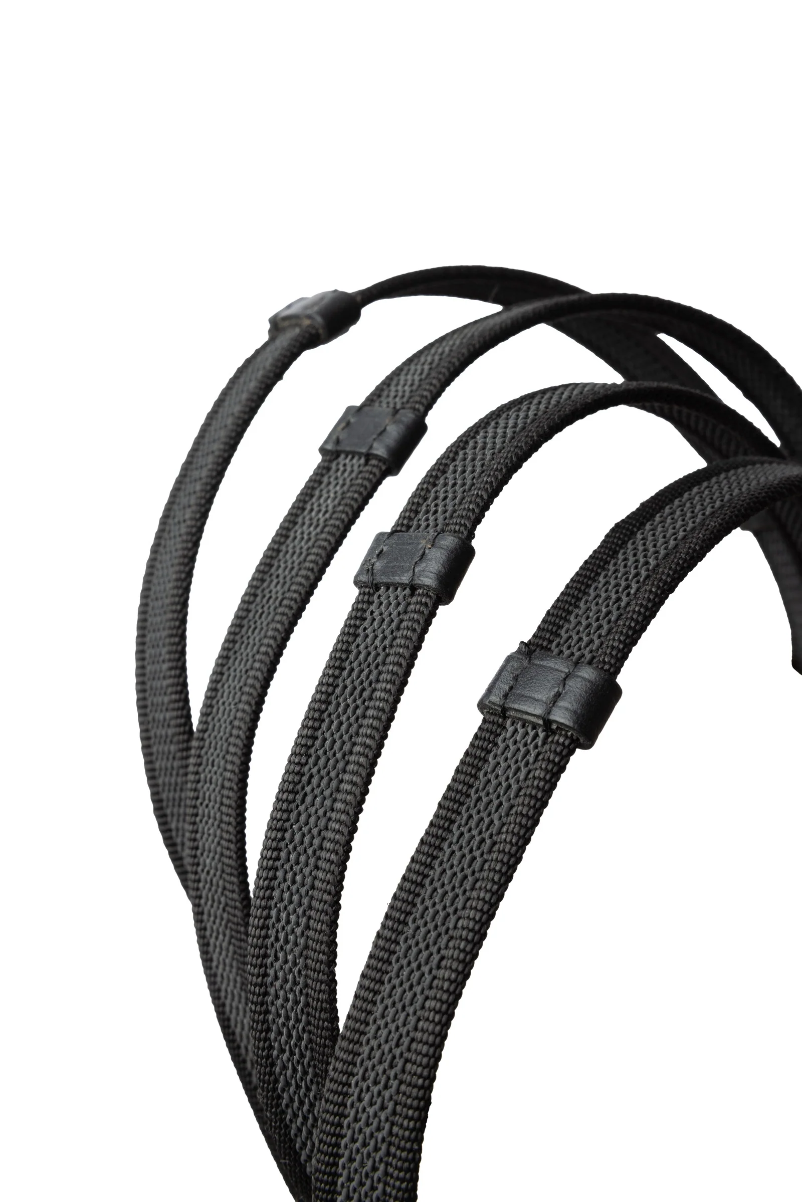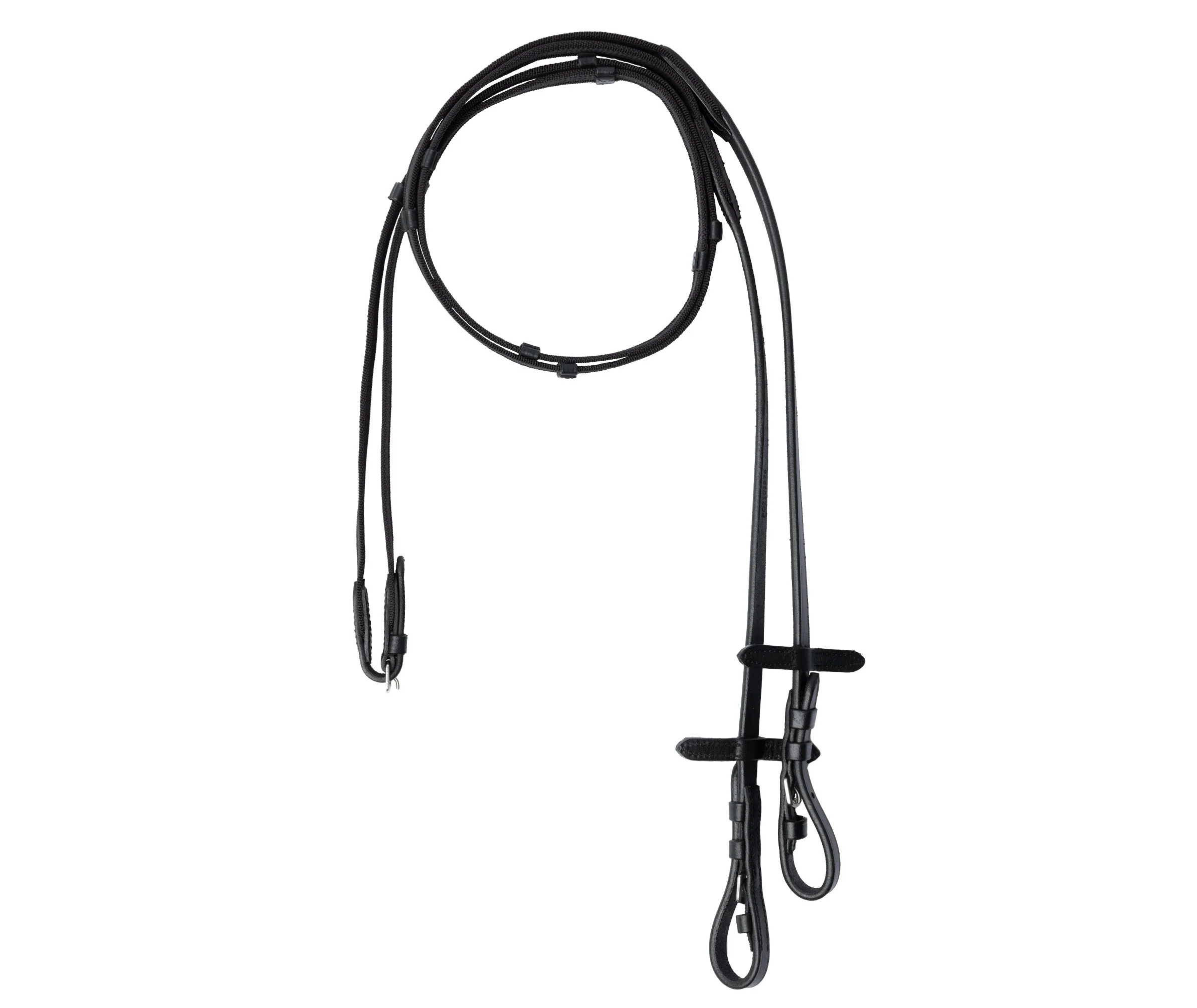 Õhukesed ja peenikesed kummiga läbipõimitud ratsmed, mille kerge kummist kate tagab kindla haarde ja parema kontrolli ilma liigse paksuseta. Elegantne ja praktiline valik valjastele, kui eelistad käes mugavalt istuvaid ning vastupidavaid ratsmeid.