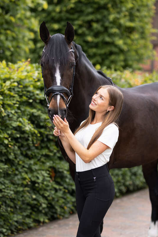 Somerset valjad on anatoomilise lõikega ning pehmendusega nii kapsli kui ka kuklarihma juures, pakkudes hobusele maksimaalset mugavust. U-kujuline otsmikurihm valgete sädelevate kivikestega lisab elegantse ilme. Tänu praktilistele trukkidele on otsmikurihma lihtne soovi korral välja vahetada. Metallist kinnitused sobituvad ideaalselt kokku nappa-naha luksusliku viimistlusega.
