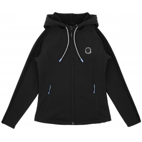 A water-repellent and elegant softshell jacket. – Adjustable: Hood with drawstring. – Style and freedom of movement: Stretch fabric and tailored fit. DETAILS: – Front zip closure and zipped hand pockets. – “Equithème je t’aime” badge on the front and silicone branding with rhinestones on the back. COMPOSITION: Outer fabric: 92% polyester, 8% elastane. Inner fabric: 100% polyester.