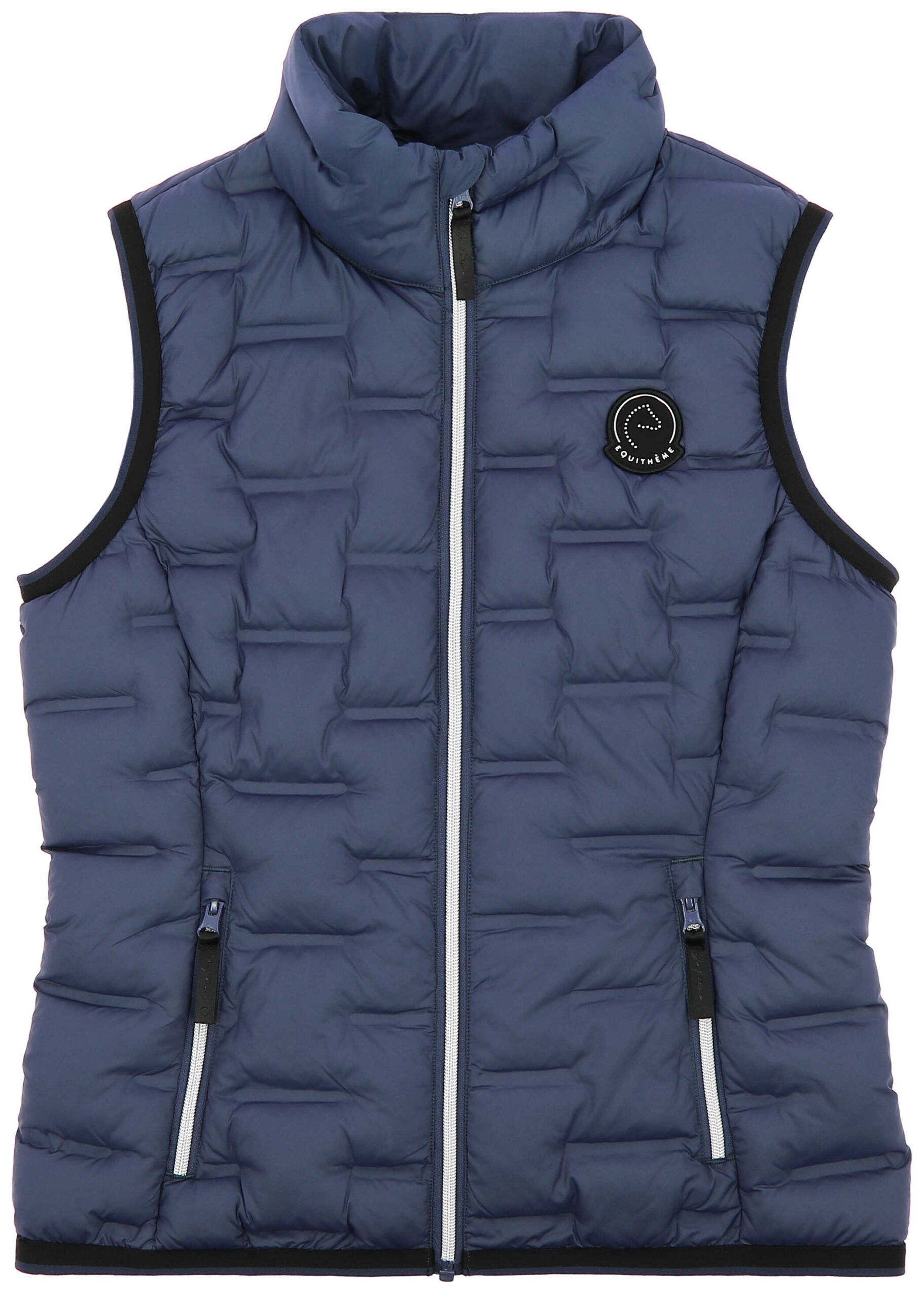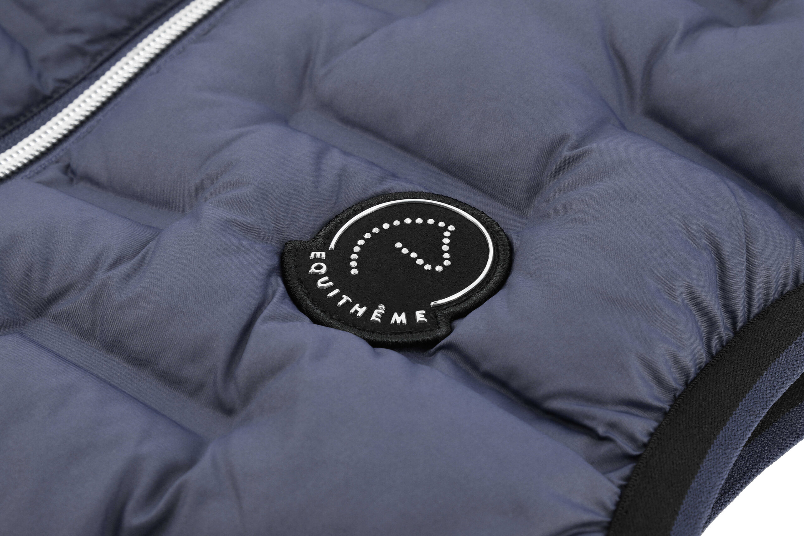 The water-repellent sleeveless vest with a fitted and functional design. – Water-repellent protection: PFC-free DWR treatment. – Fit and style: Tailored cut with elastic finish at the hem and armholes. – Practical: Front zip closure and zipped hand pockets. DETAILS: – Chin guard. – “Equithème je t’aime” branding on the back and badge on the front. COMPOSITION: Outer fabric: 100% polyester.